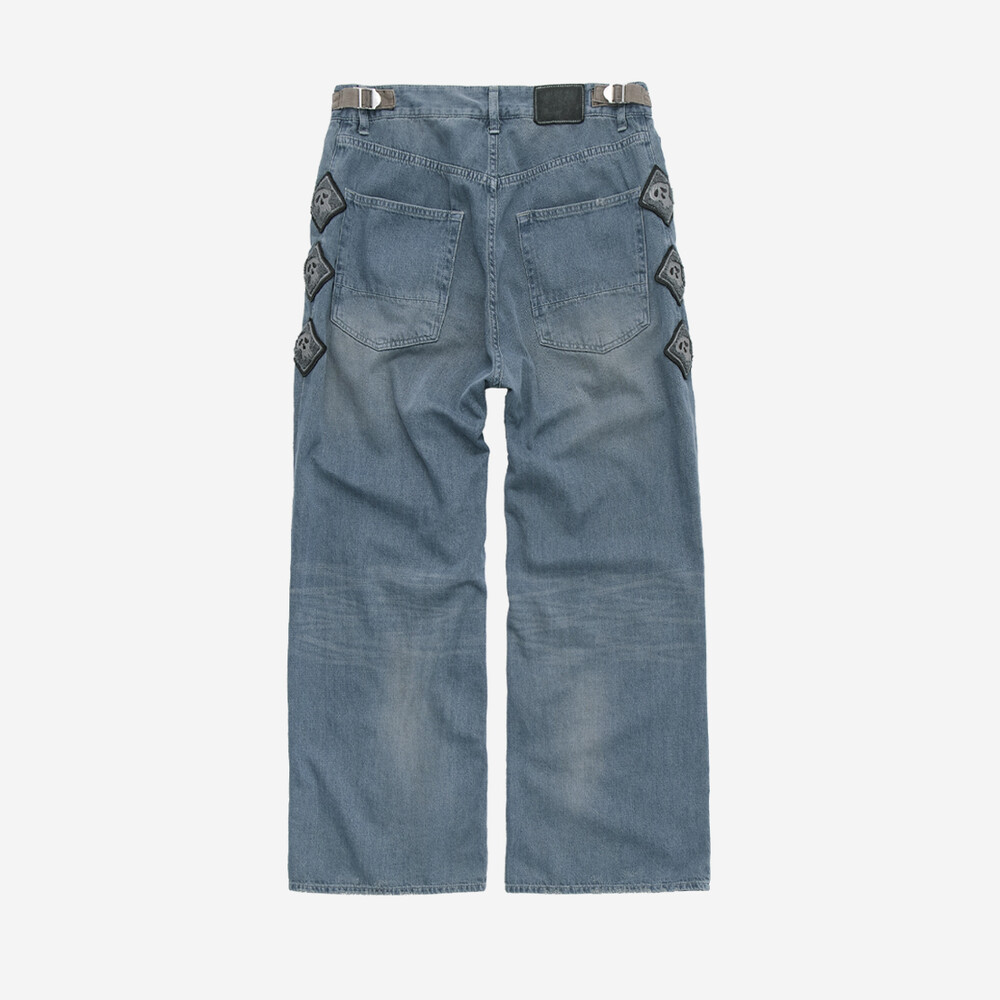 허벅지 옆부분엔 6개의 sad skull 부클 패치,