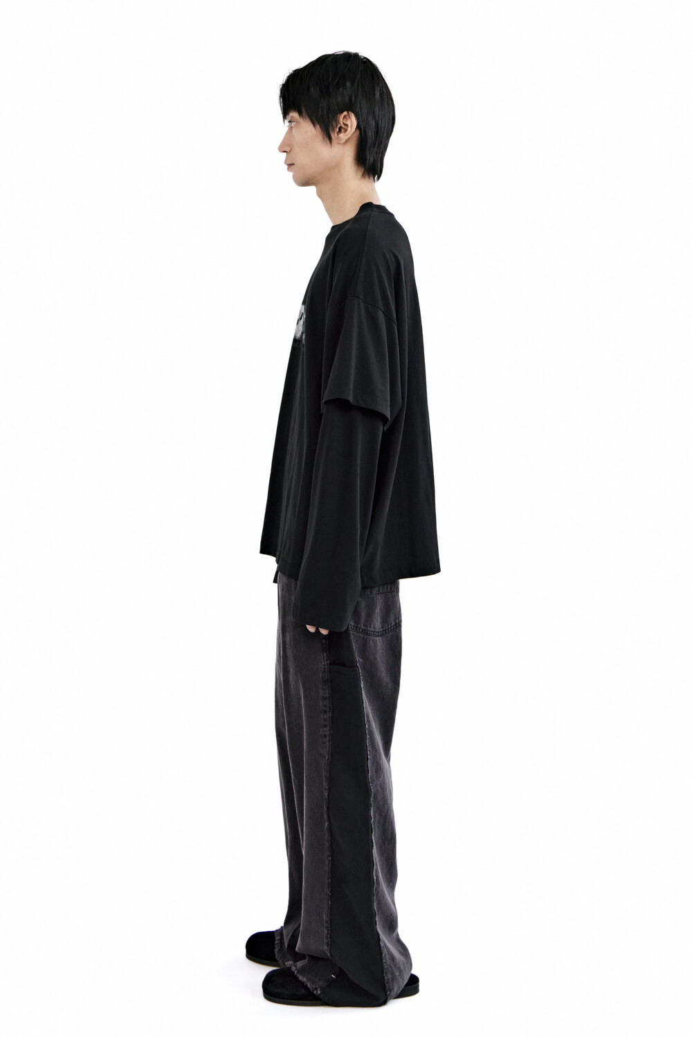 (11.08 PM6:00) hank side rebuild denim pants - black purple