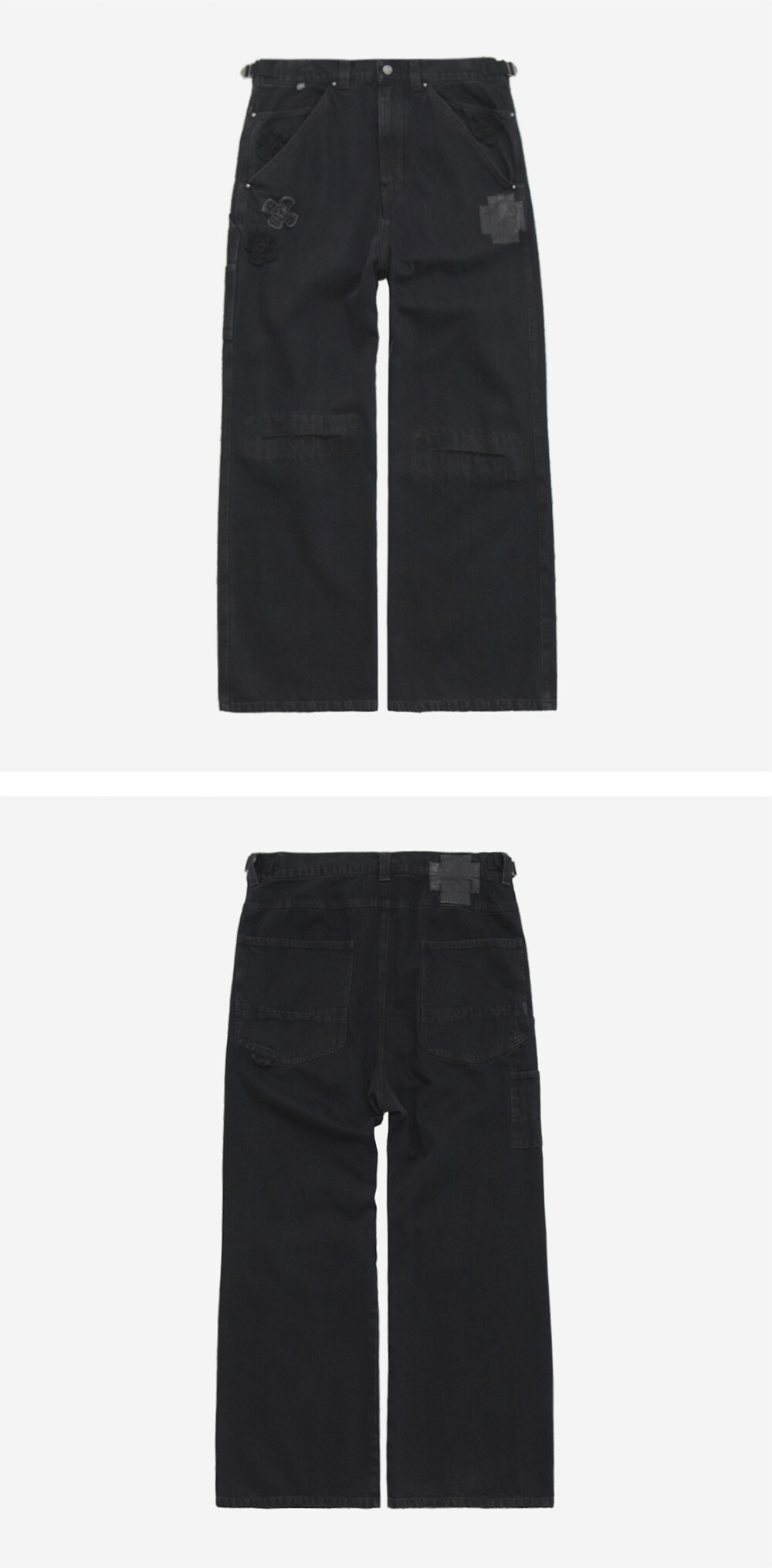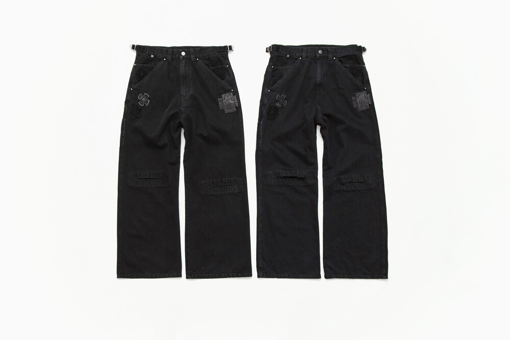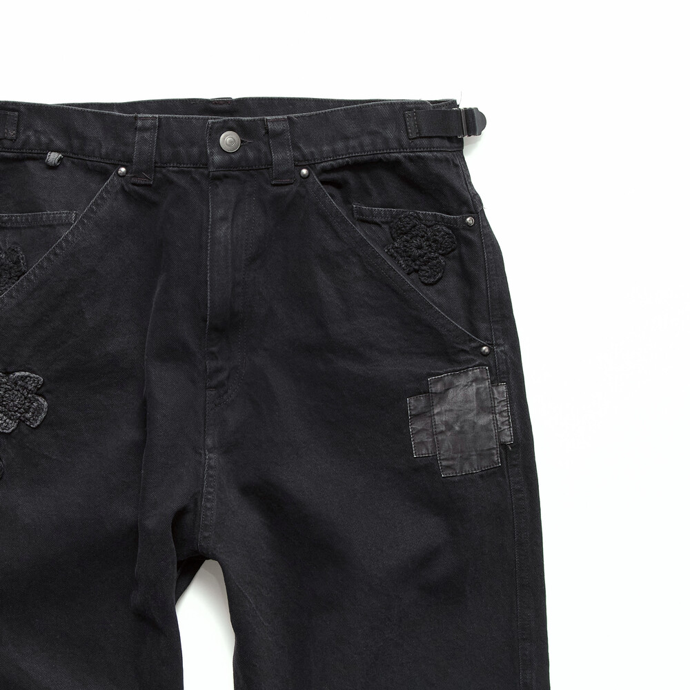 1011 cross patched denim pants (cut off knee) - black