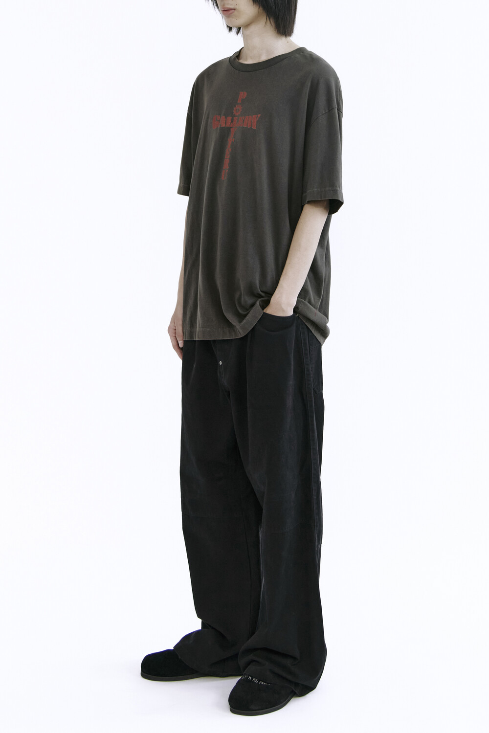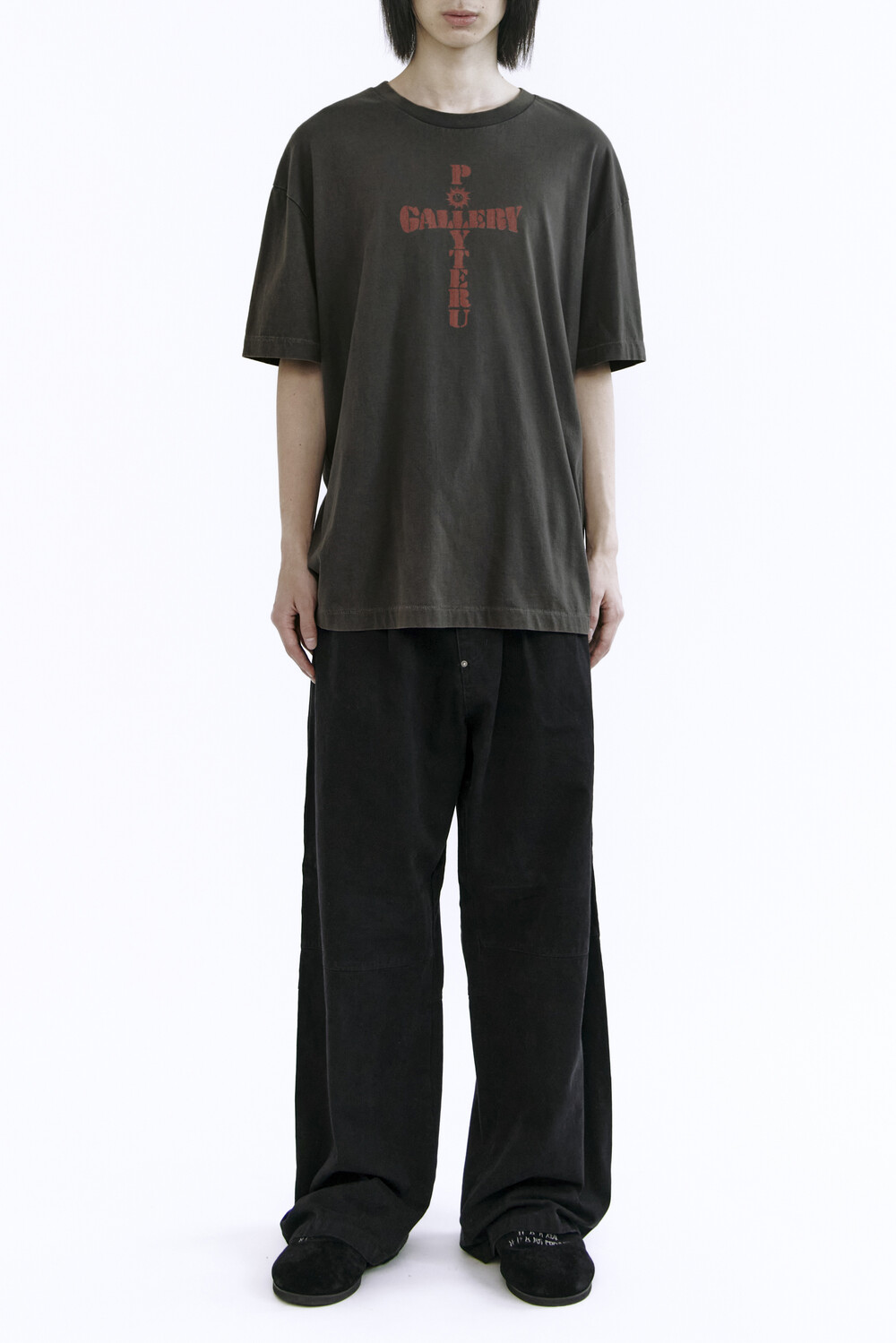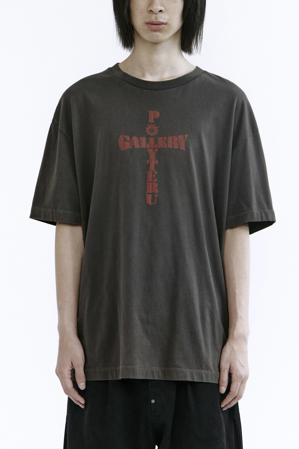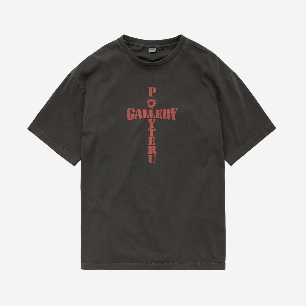 (09.20 PM6:00) 1011 1/2 graphic t-shirt 'cross tee' - washed charcoal brown