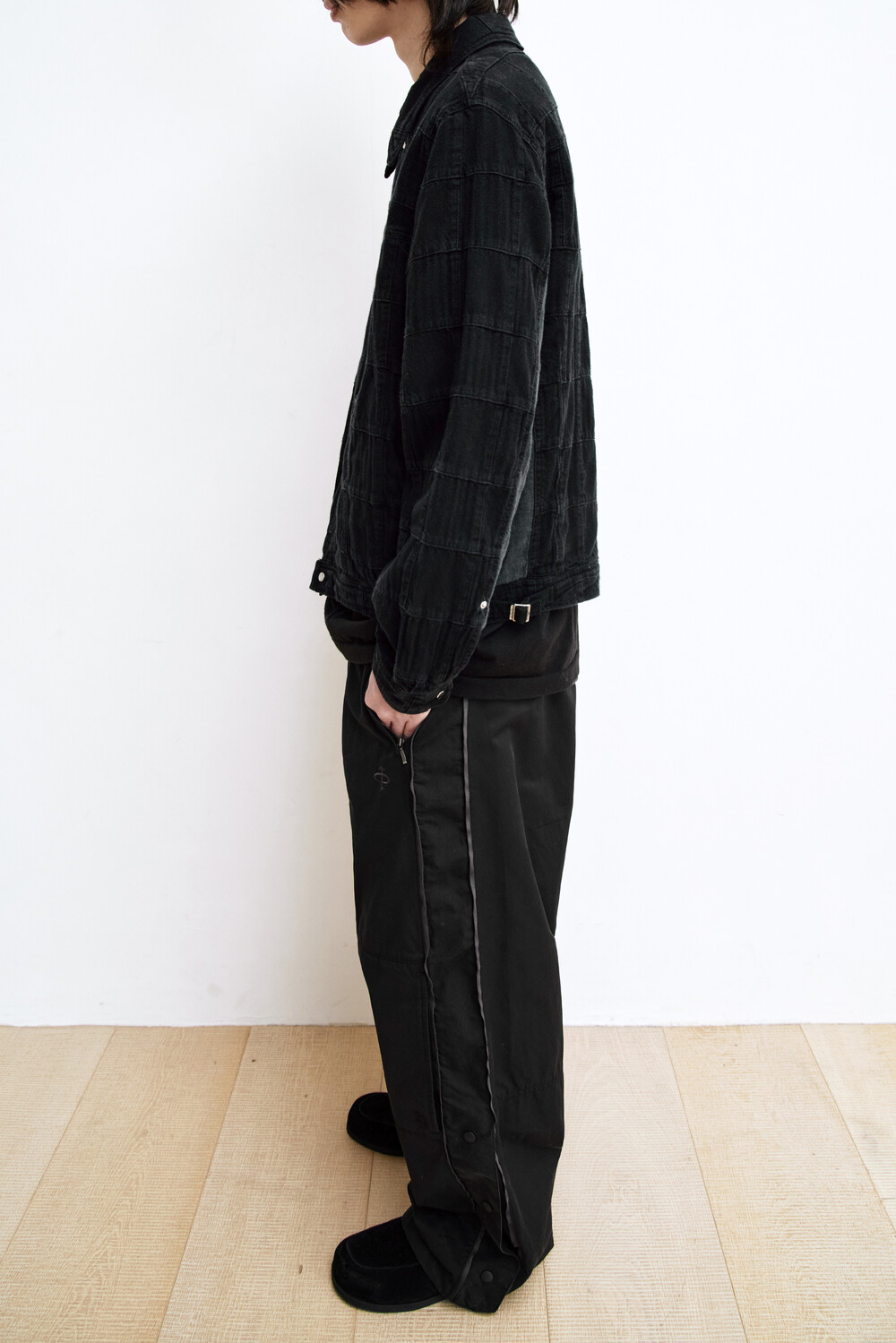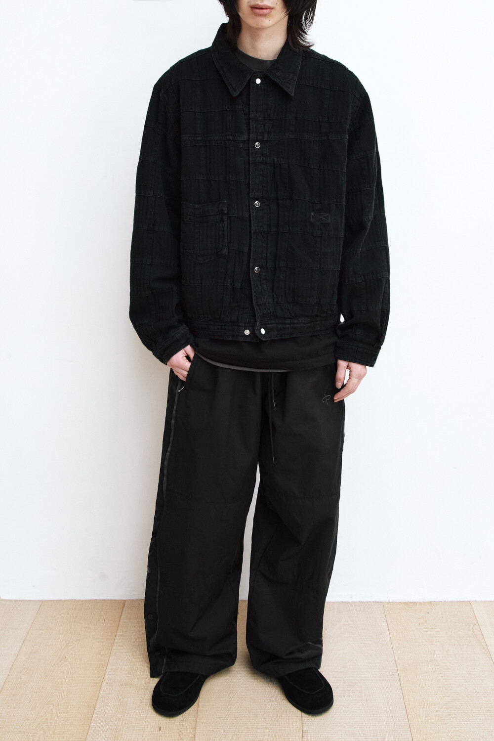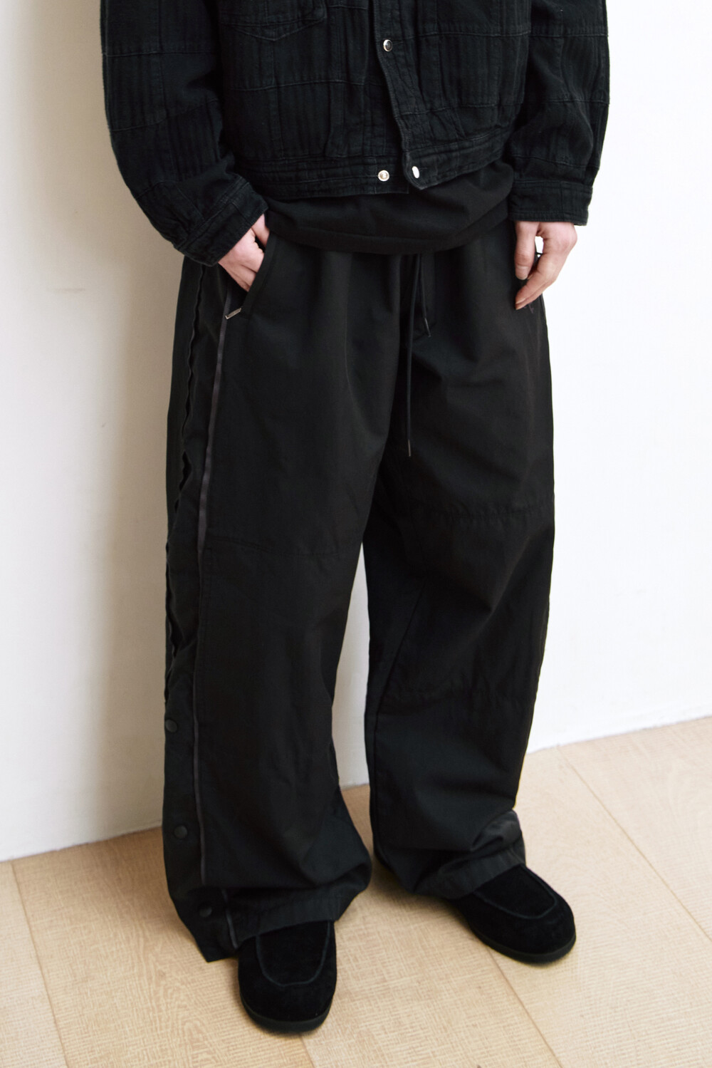 (03.14 PM6:00) 1011 nylon track pants - triple black (snap ver.)