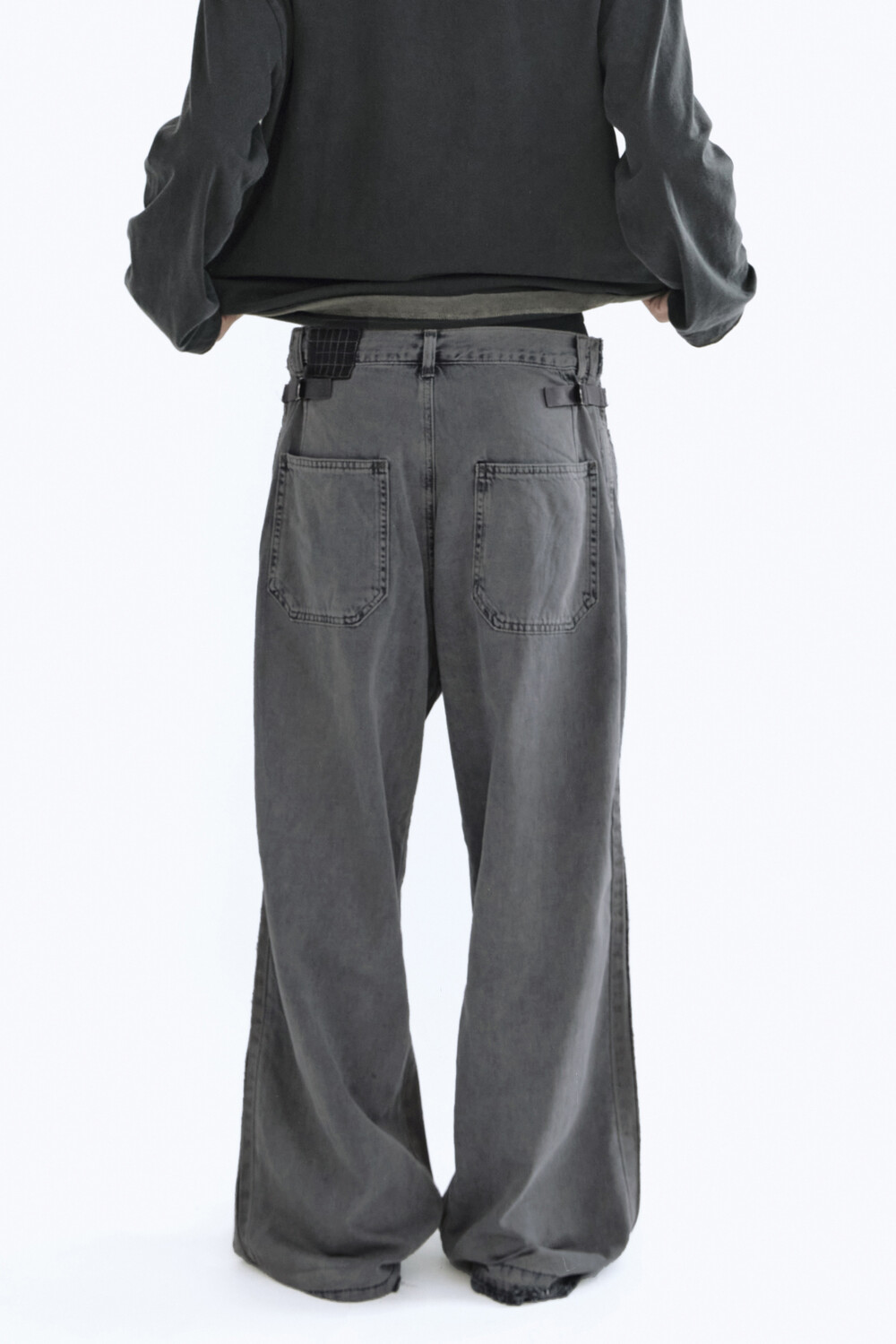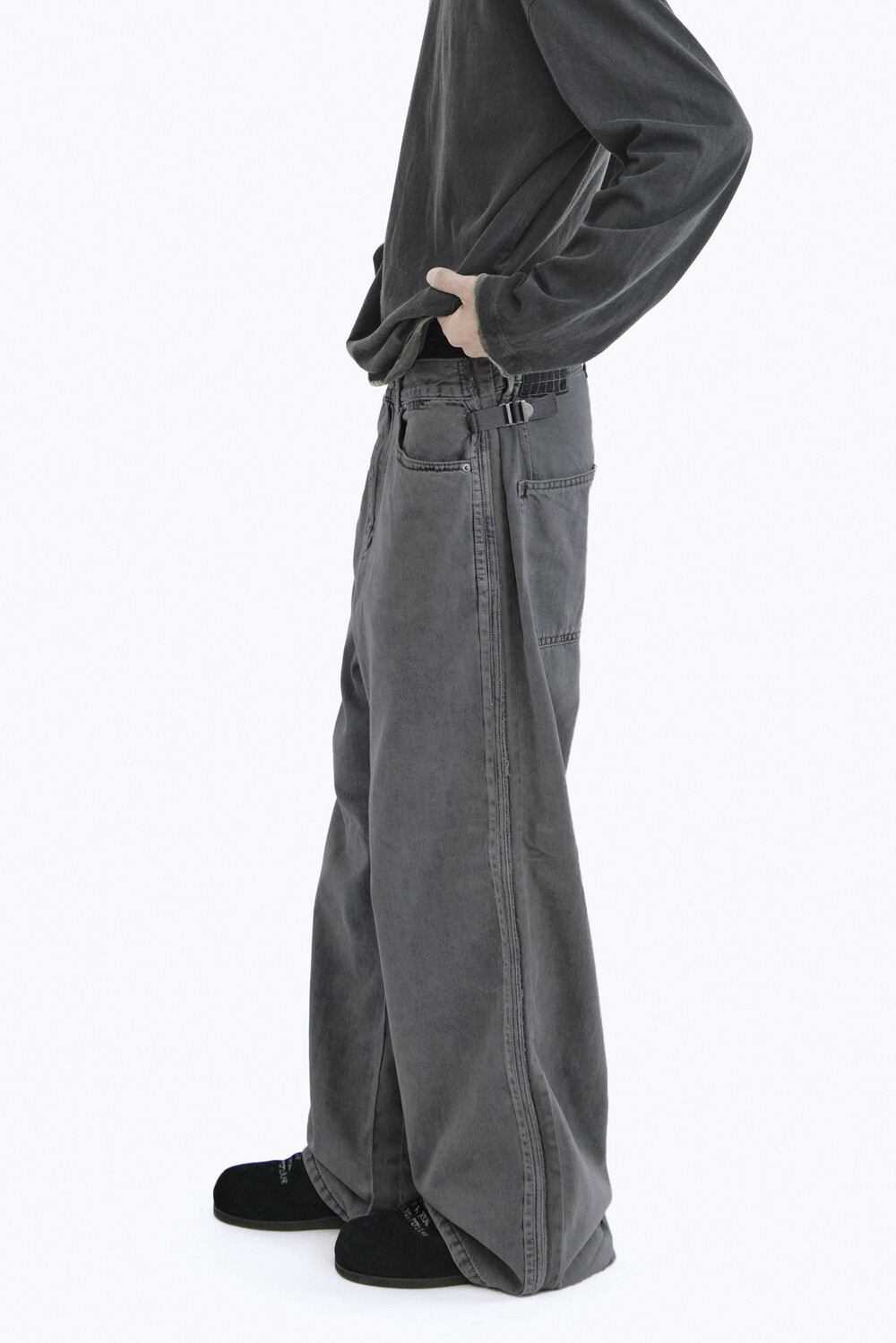 rebuild gosima denim pants type 002 (tape) - washed black, blue gray
