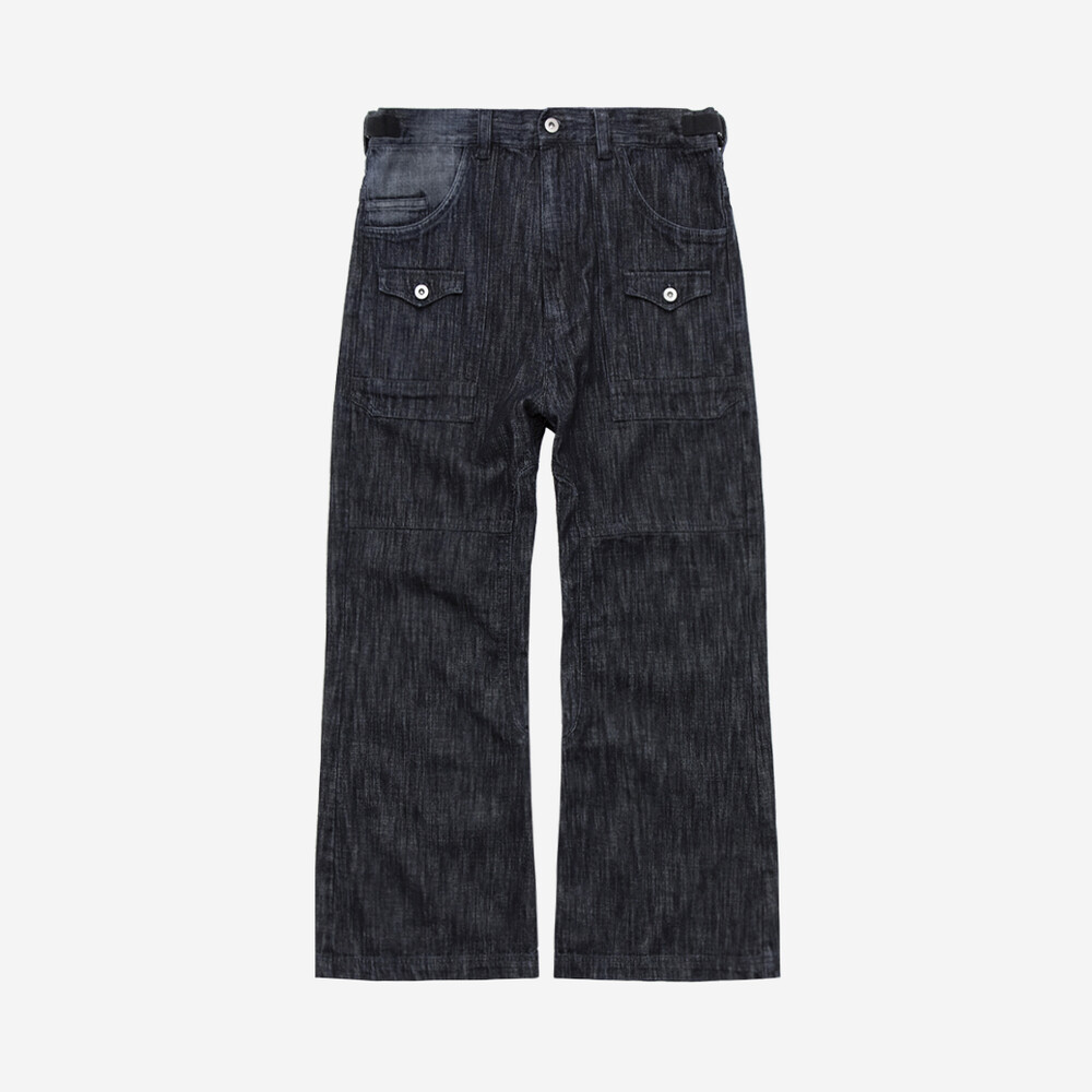 (10.15 PM6:00) flare cargo denim - slub indigo