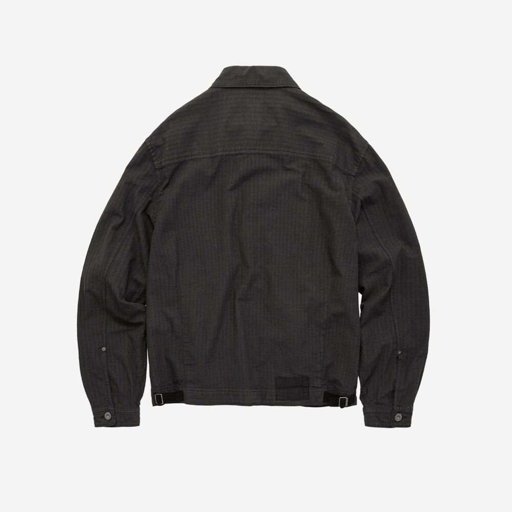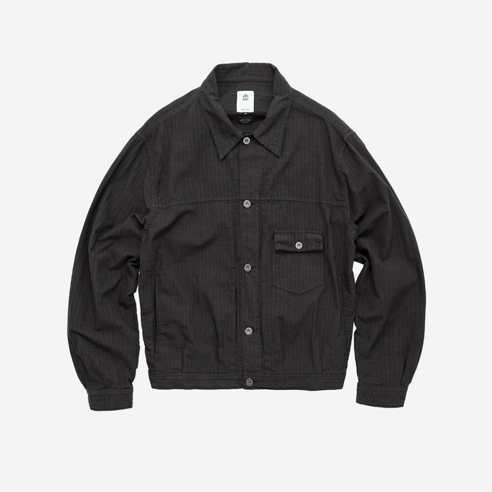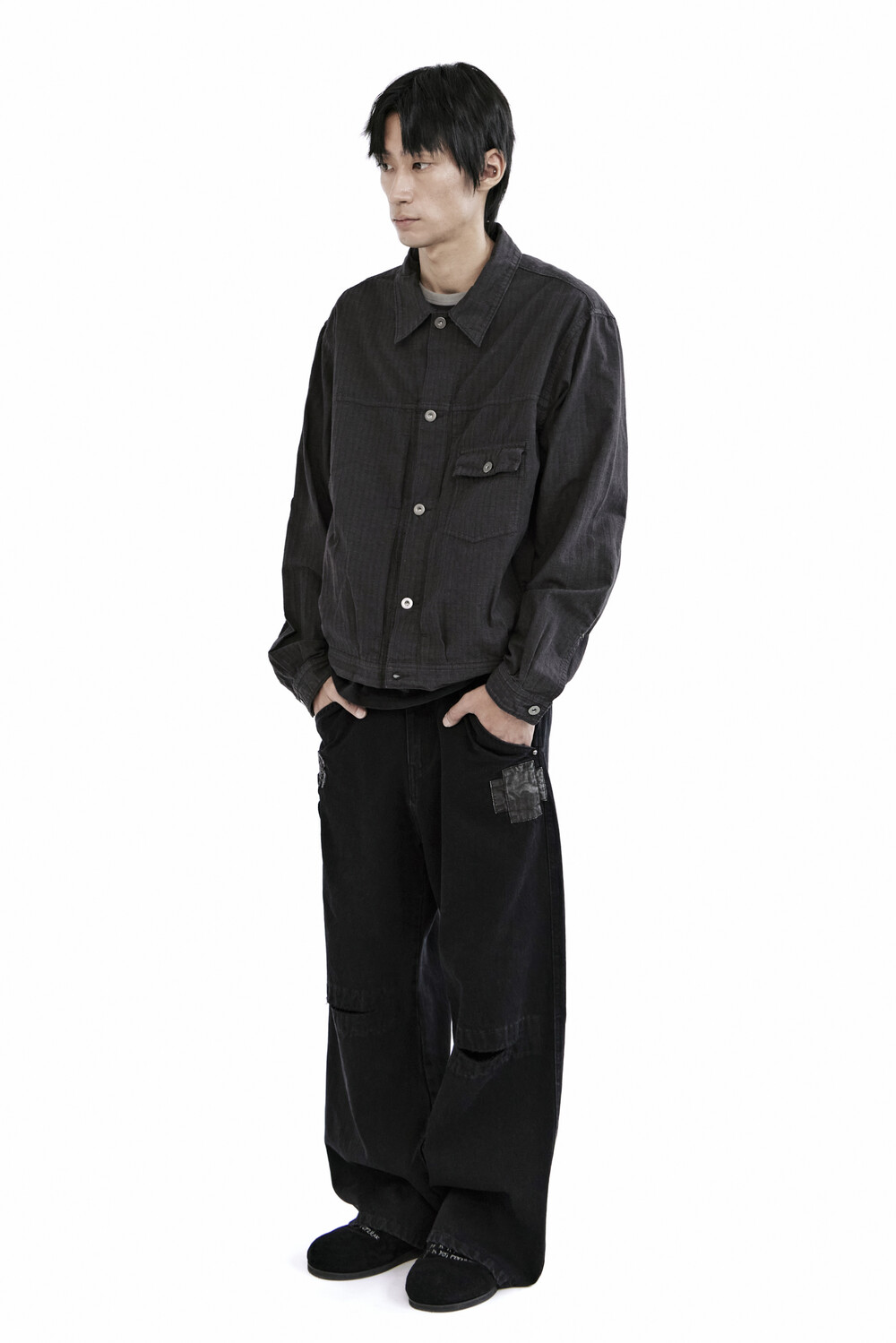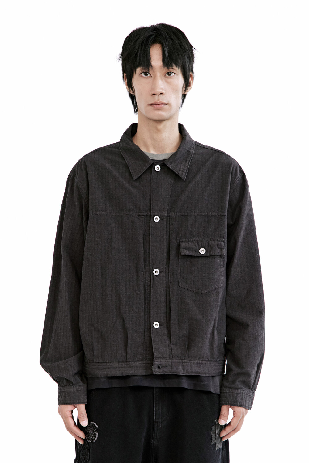 고전적 요소들을 입체패턴으로 재해석한 트러커 자켓.