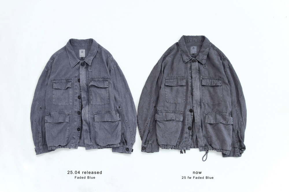 또한 조금 더 낮은 채도 및 퍼플이 섞인 블루 컬러로 완성되어, 25FW faded blue 로 색상 명칭 변경 발매됩니다.