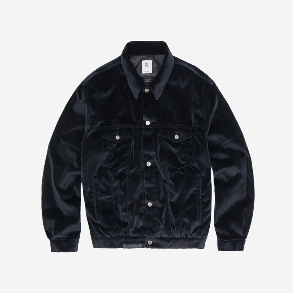 (10.18 PM6:00) velour trucker jacket - black