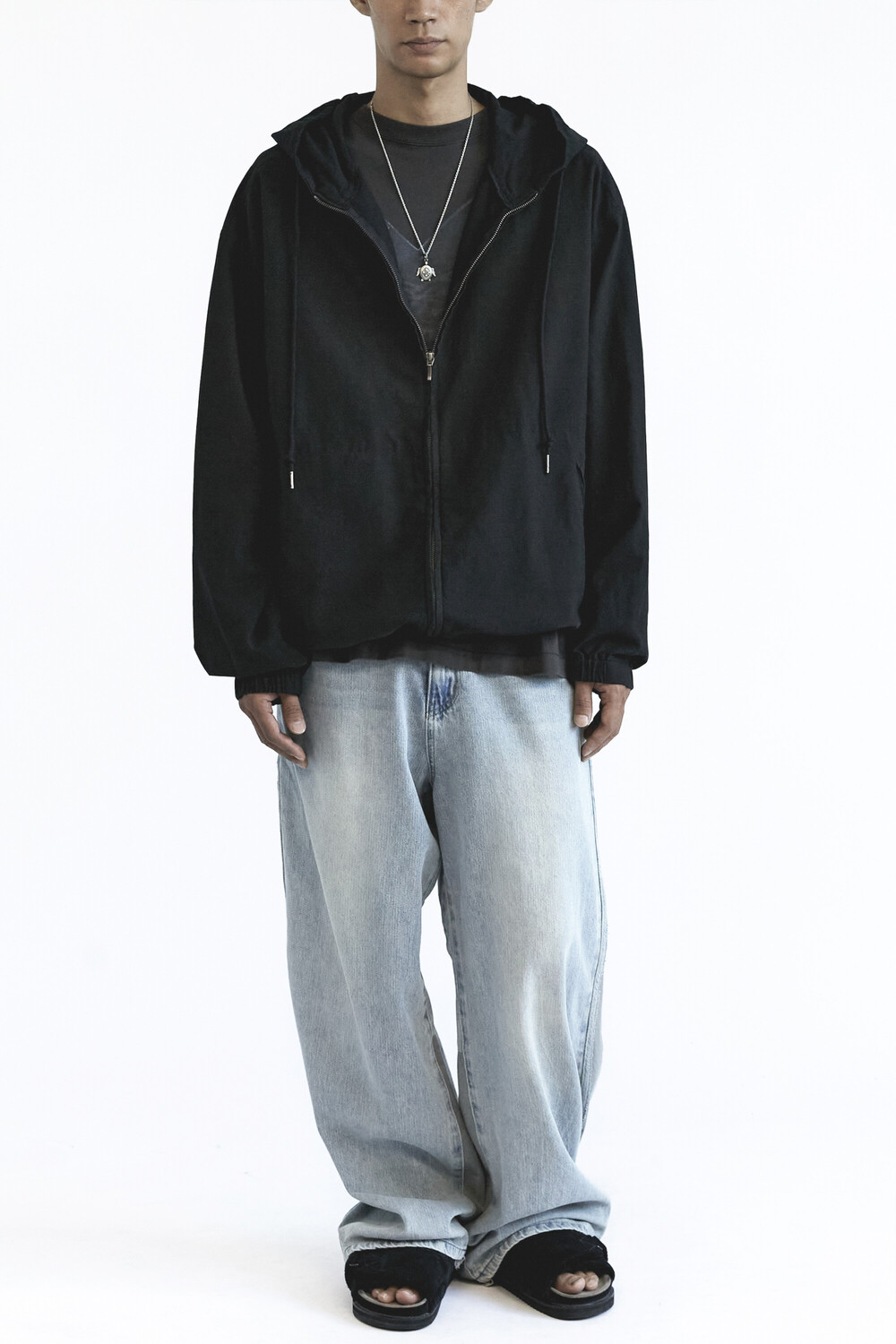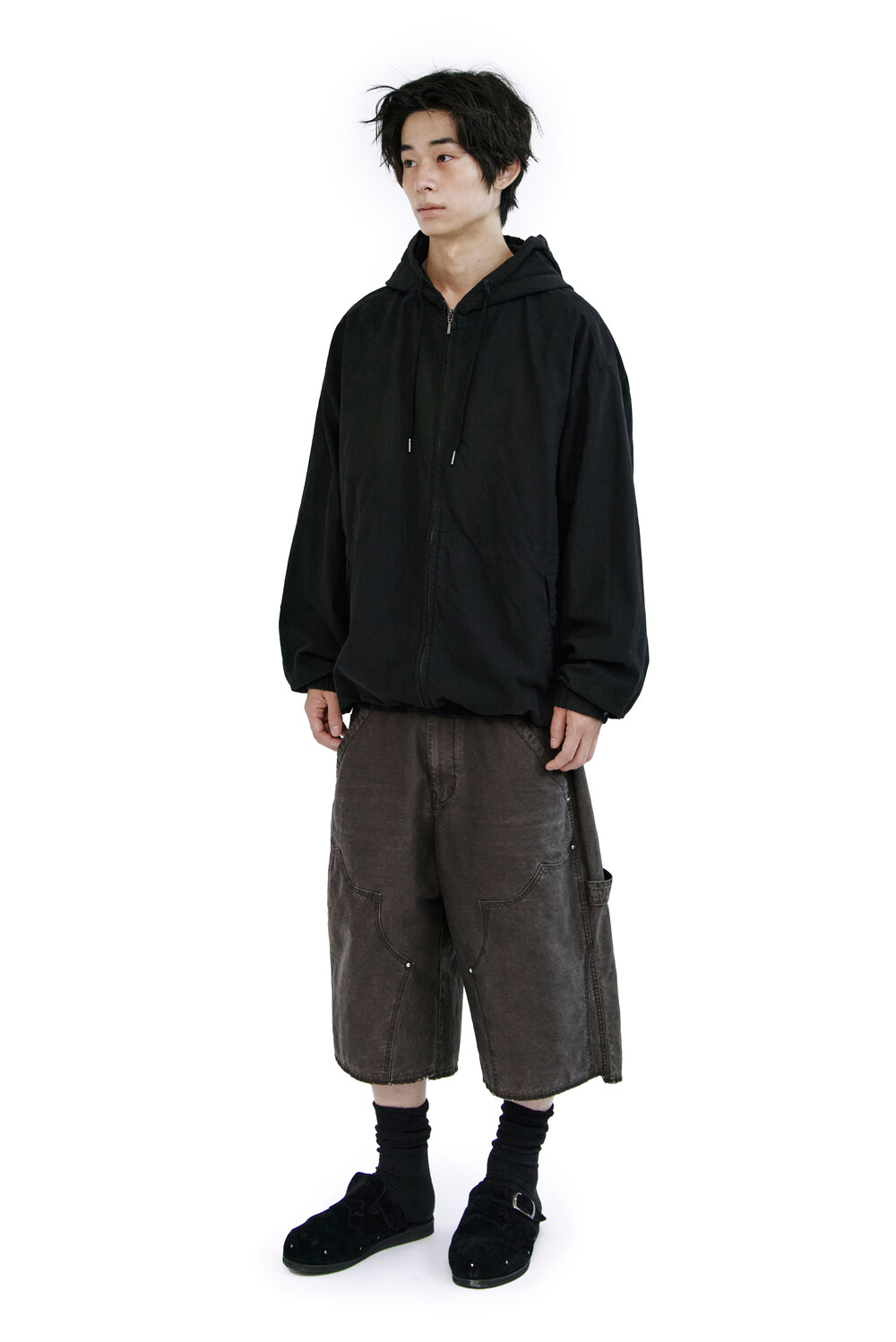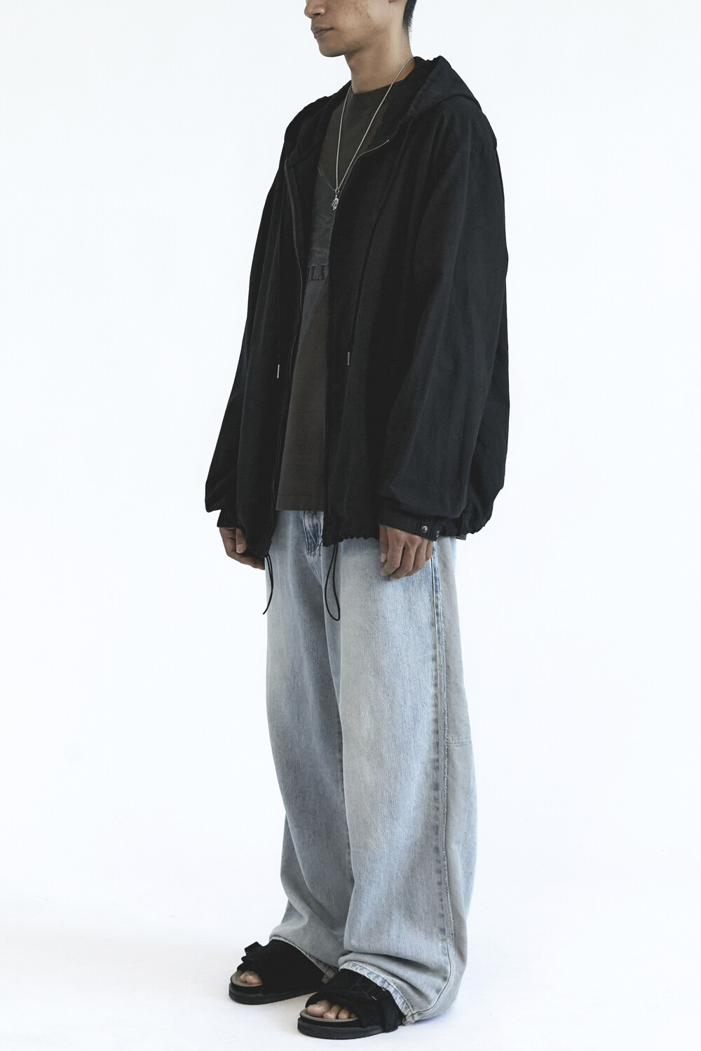 (09.20 PM6:00) zip hoodie parka - used black