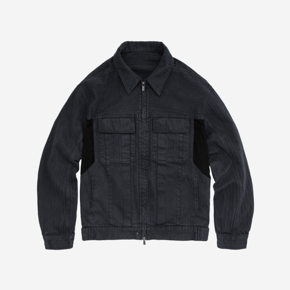 (10.18 PM6:00) HBT zip trucker jacket - ink black
