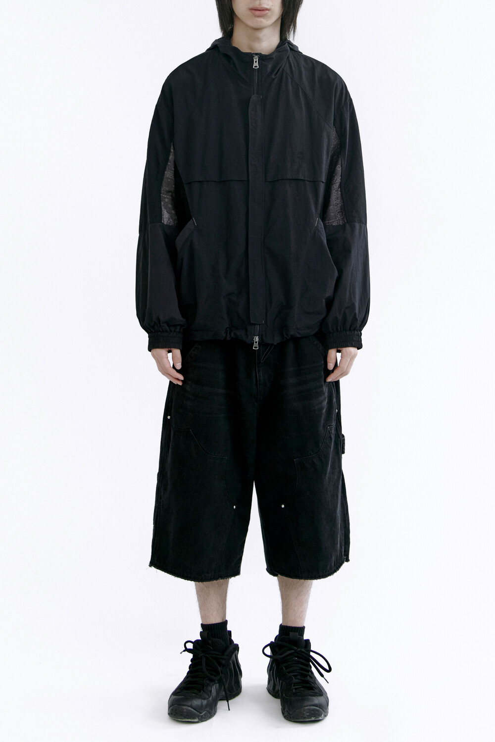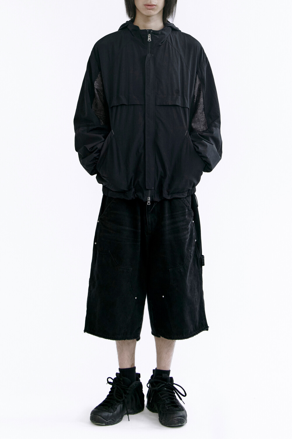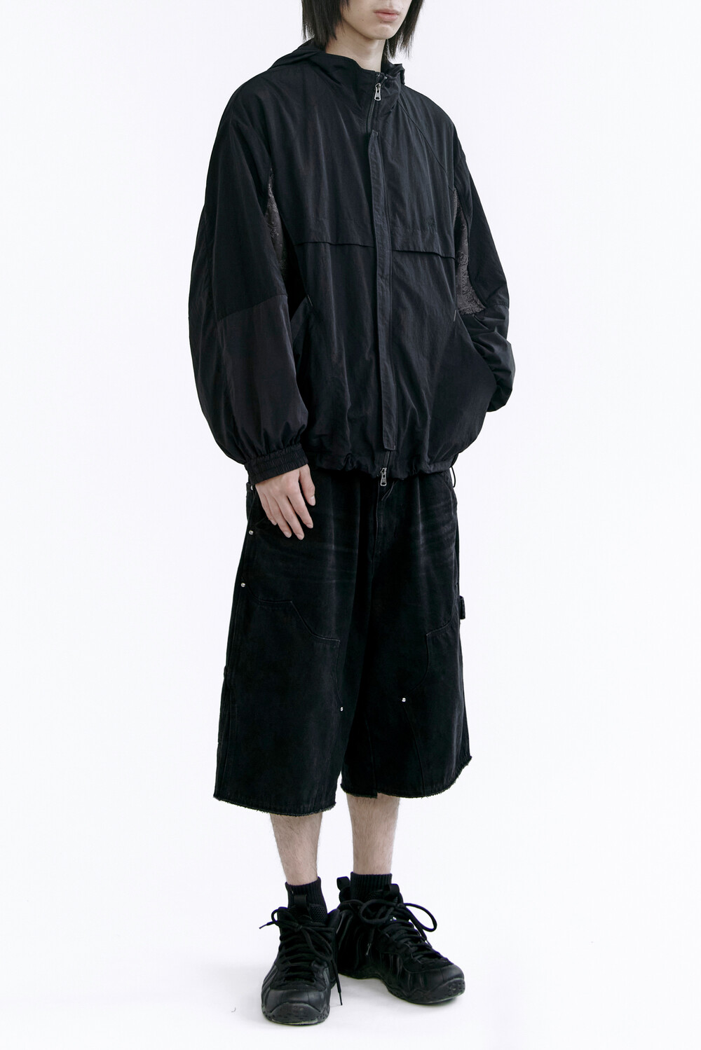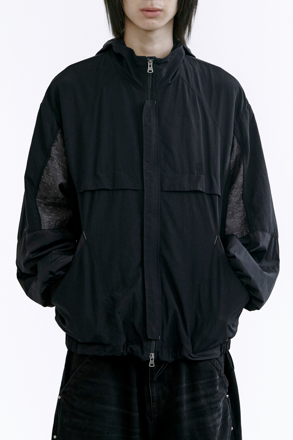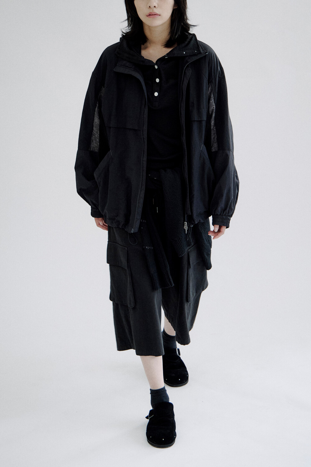 밑단 스트링을 활용해 실루엣 변형이 가능합니다.
