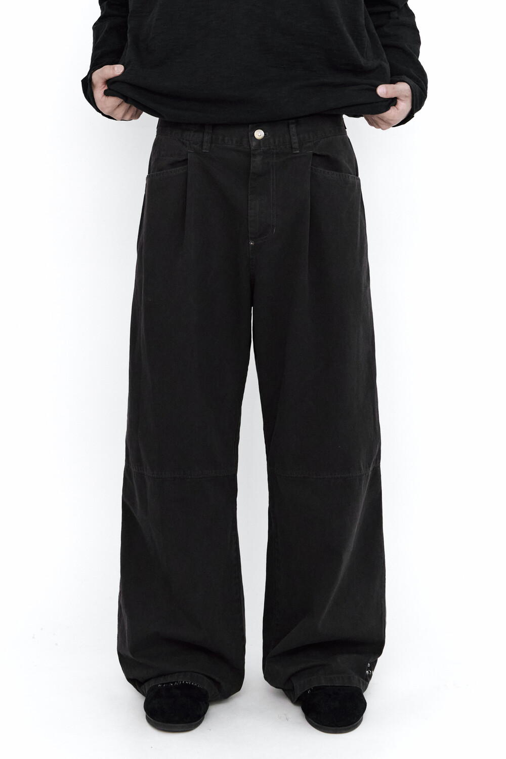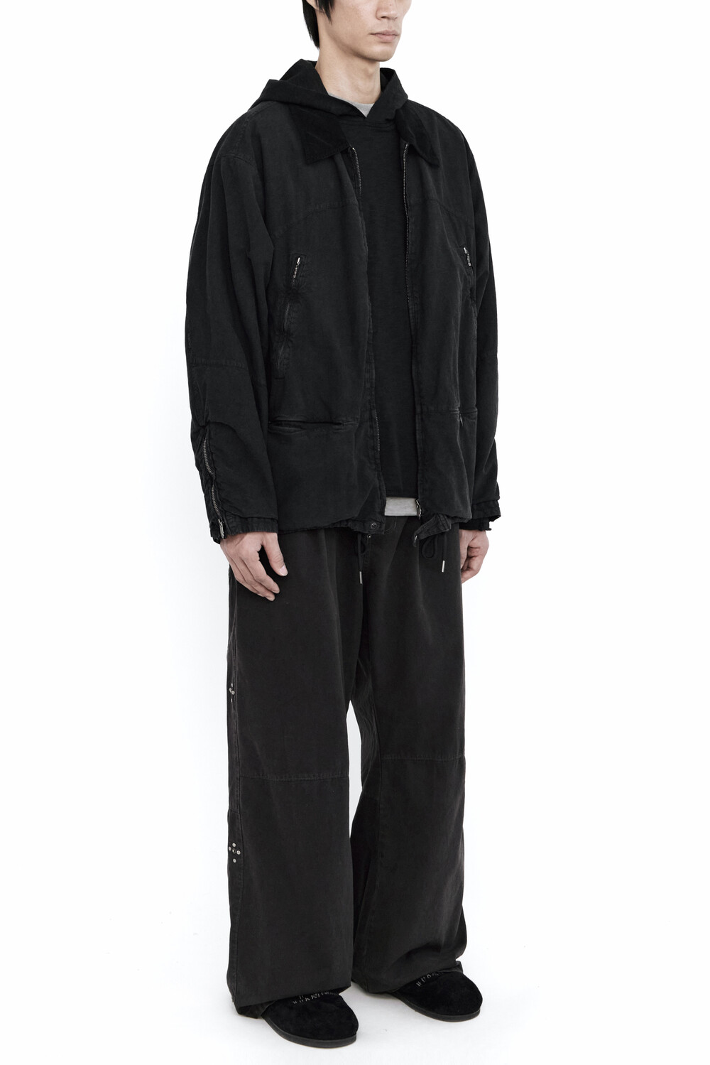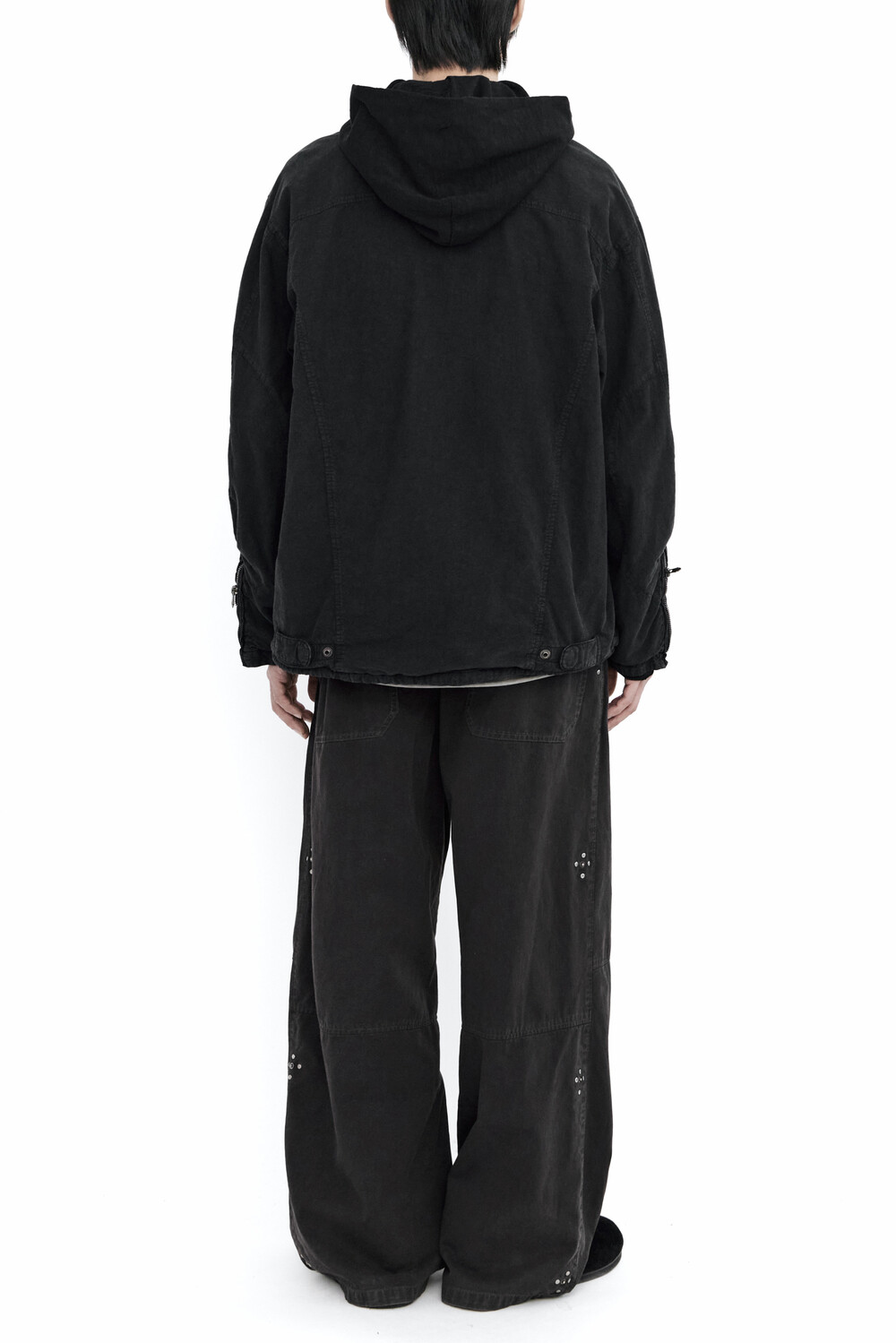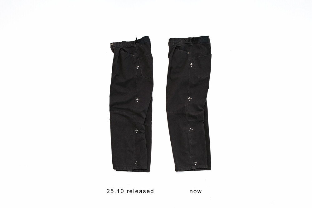 *본 제품은 사용감 있는 빈티지한 질감과 터치감을 구현하기 위해 강한 강도의 후가공을 진행한 제품으로, 디자인 의도상 신품 상태에서도 불규칙적인 미세 데미지, 워싱 흔적, 에이징 현상 및 필연적인 미세 이염이 존재할 수 있습니다.