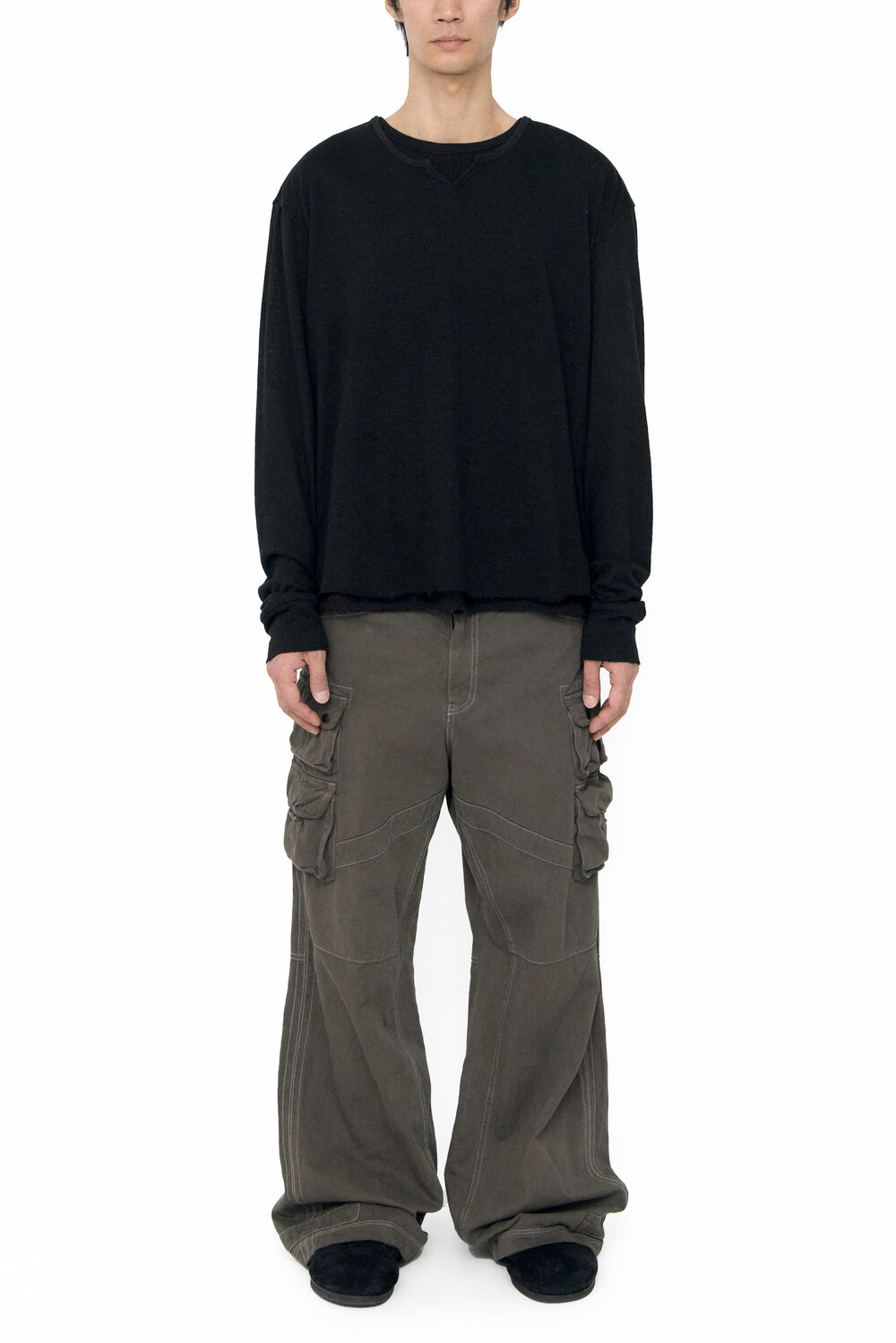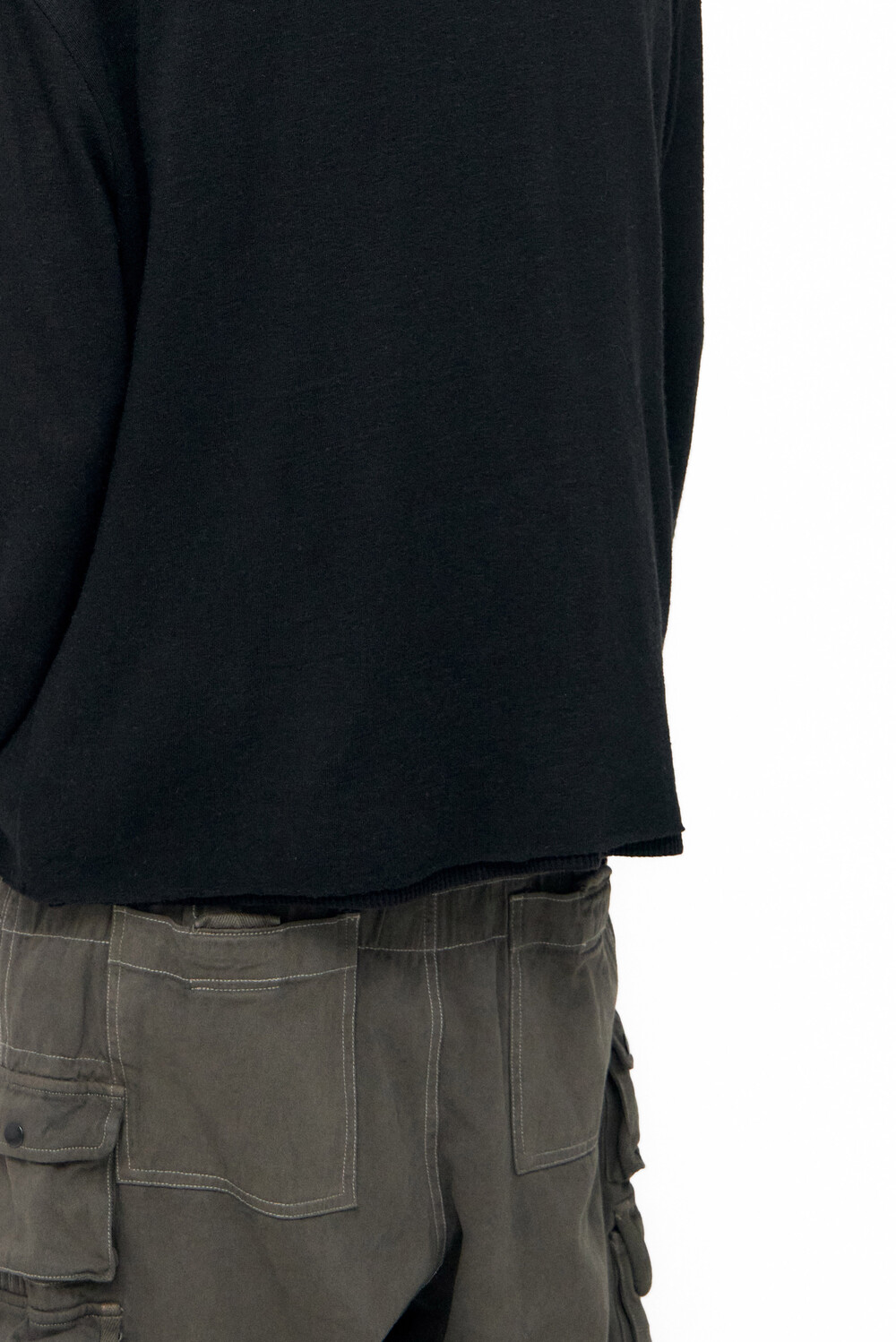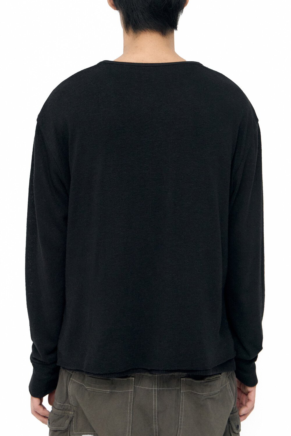 (01.10 PM6:00) root neck cropped long sleeves - black