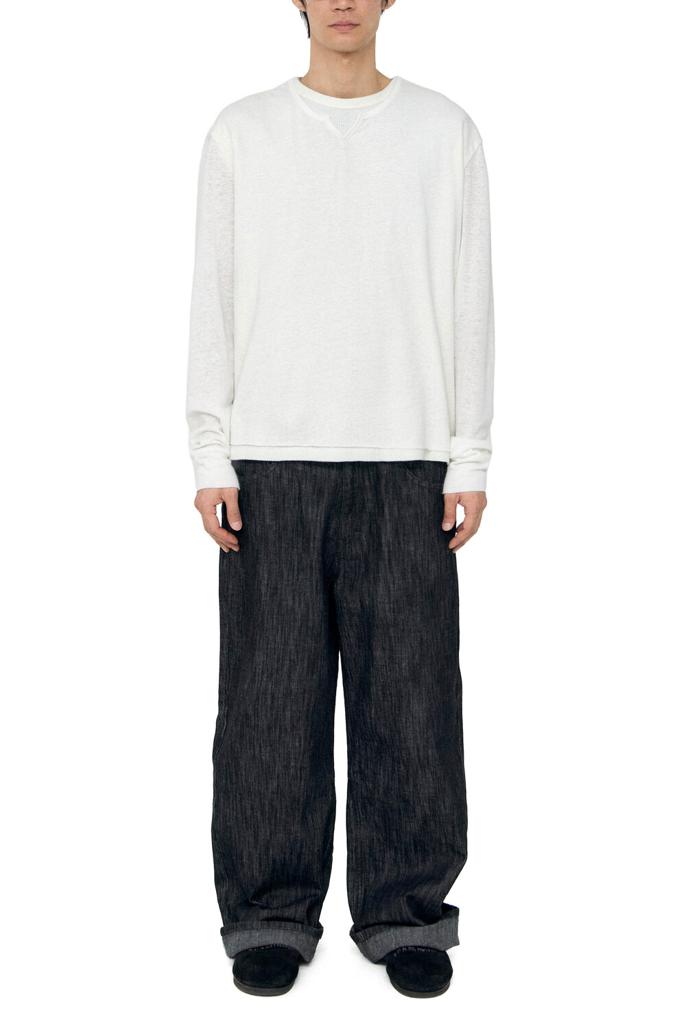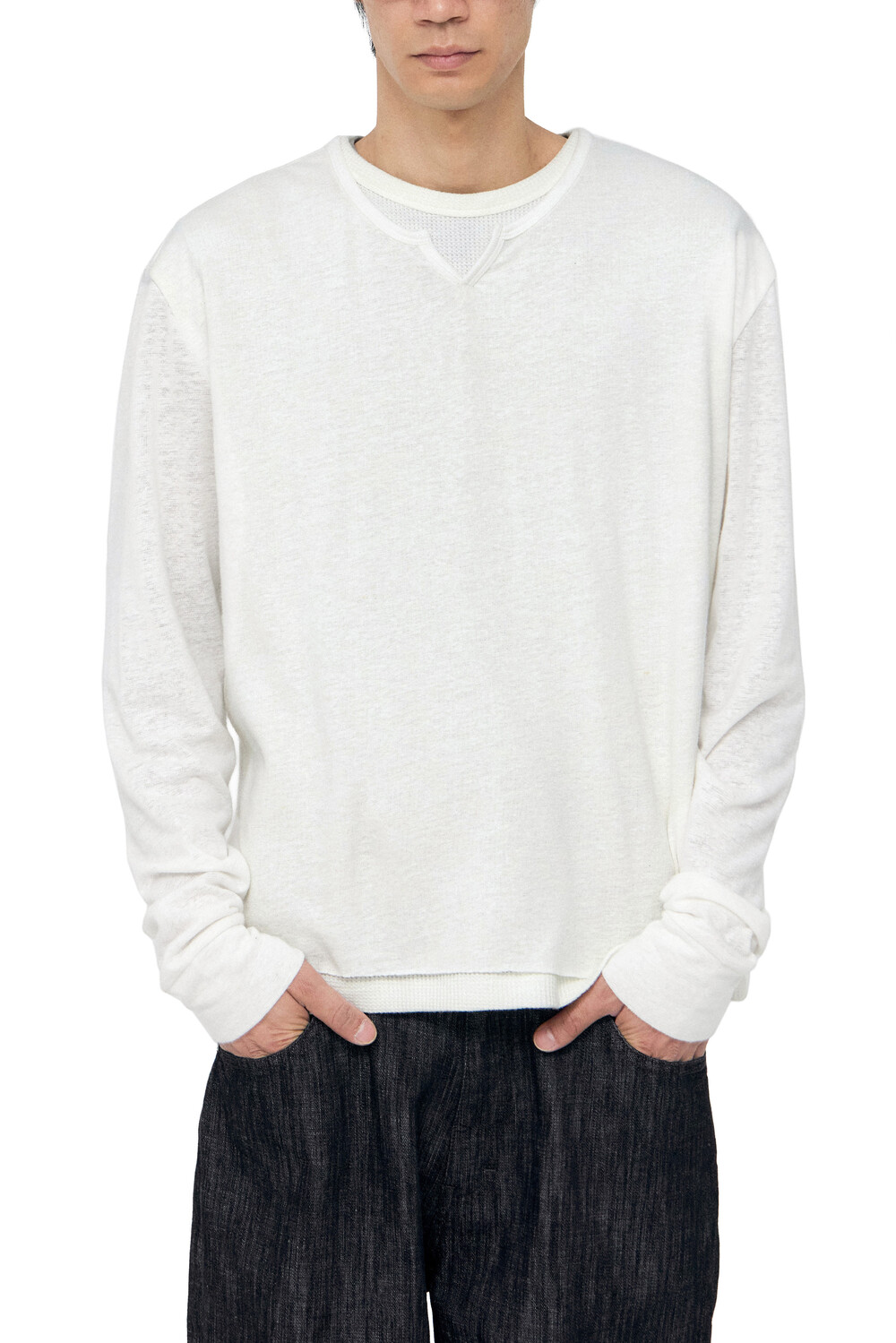 - 얇고 슬러비한 롱 슬리브 + 써멀 타입 라운드넥 슬리브리스