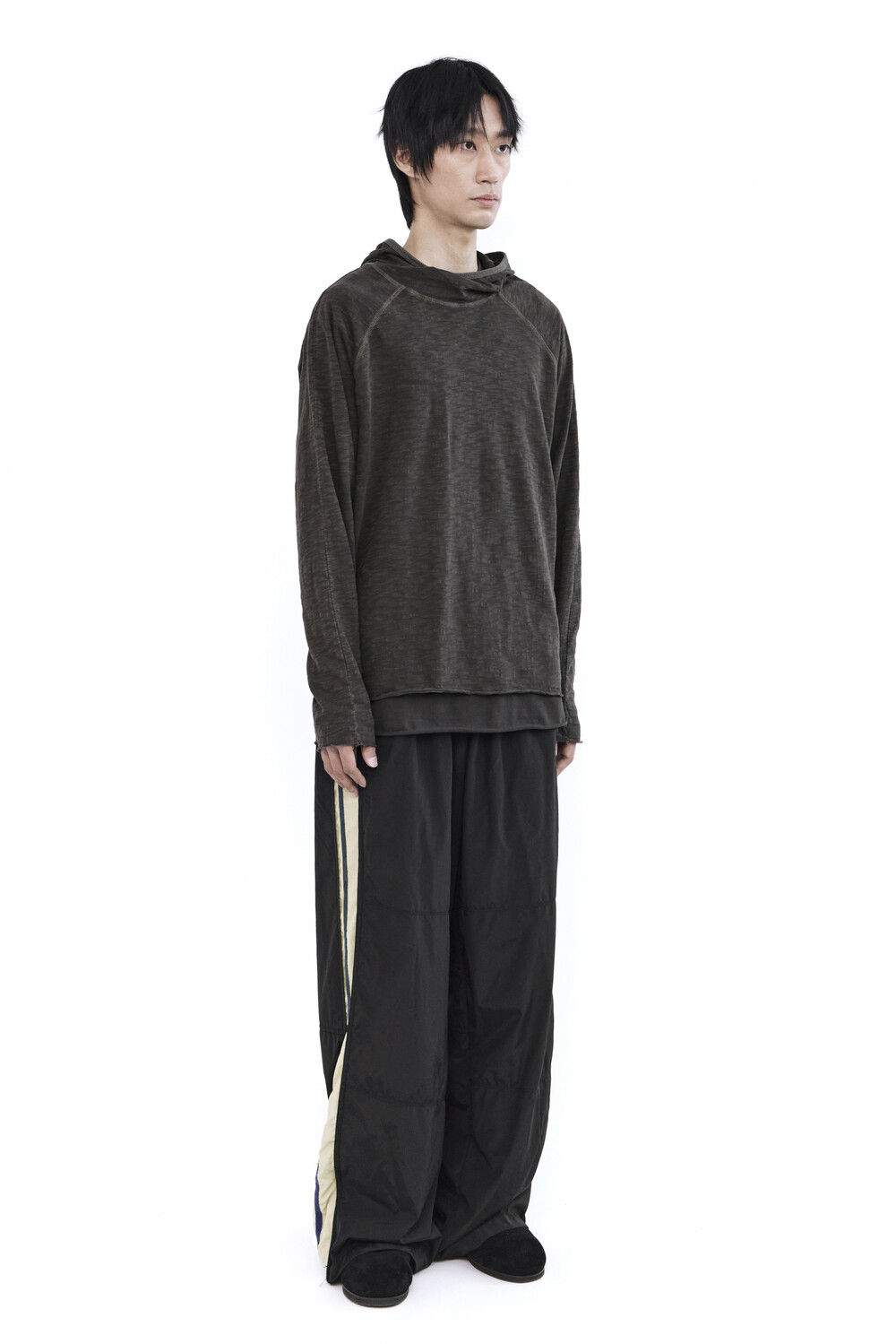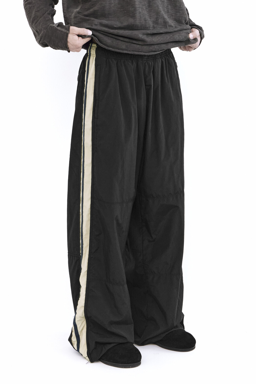 올드스쿨 무드의 트랙 팬츠.