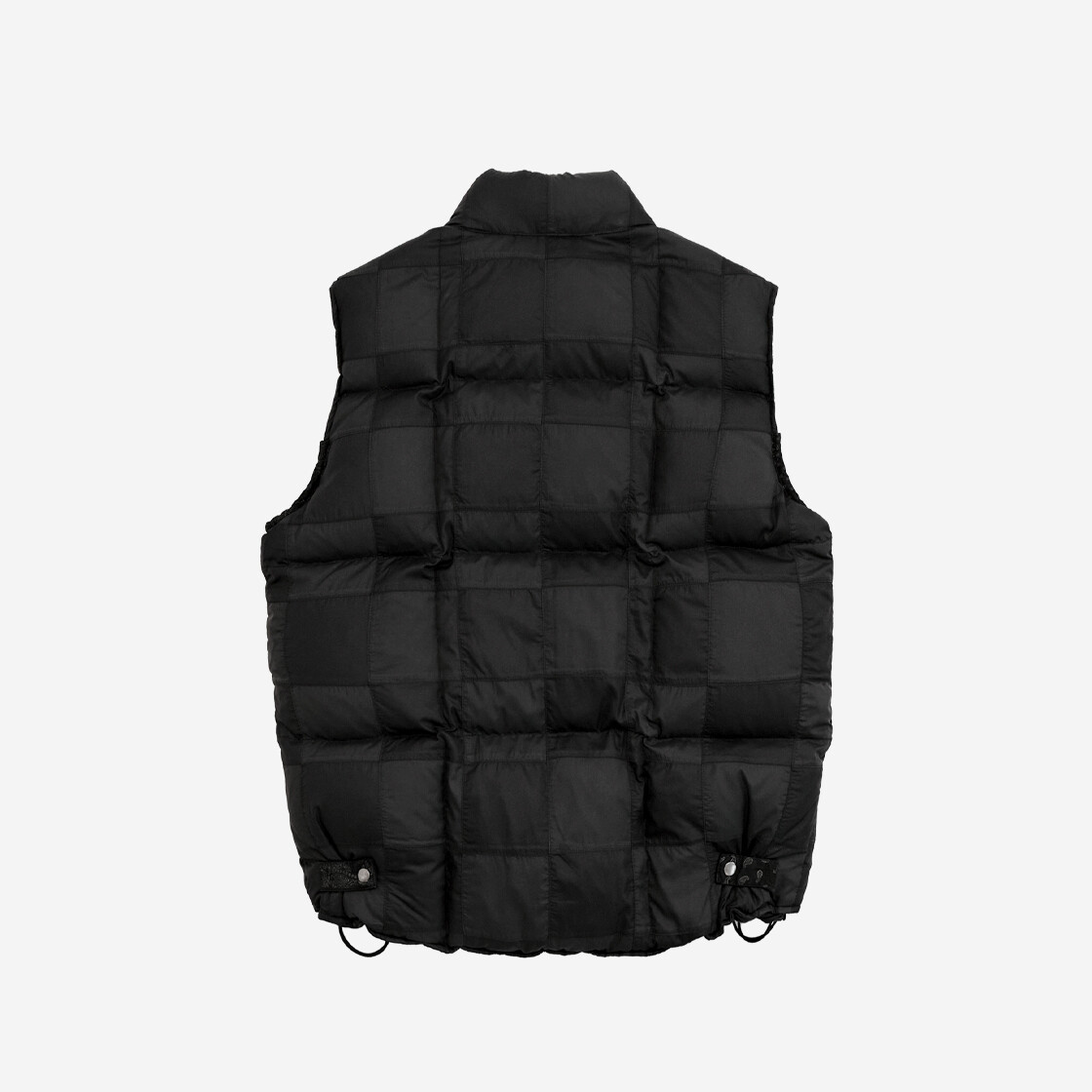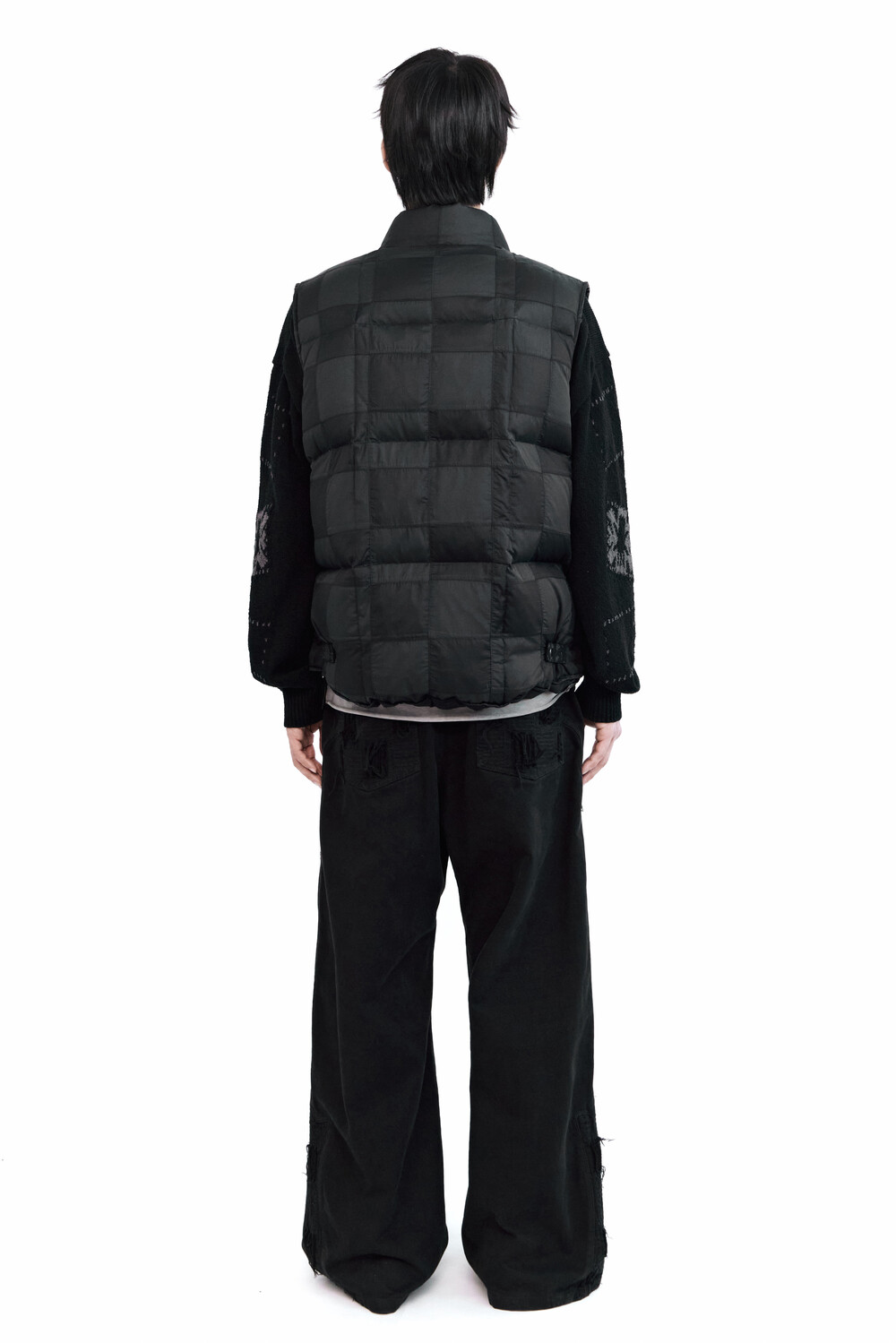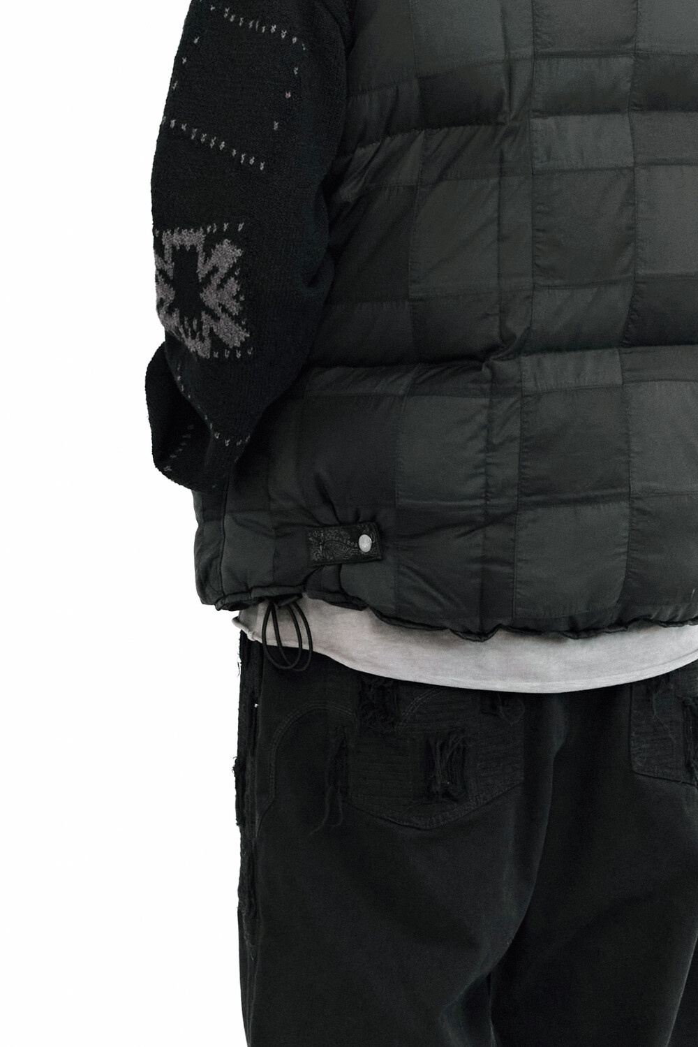체커보드 형태로 패치워크, 덕다운 충전한 푸퍼 베스트.