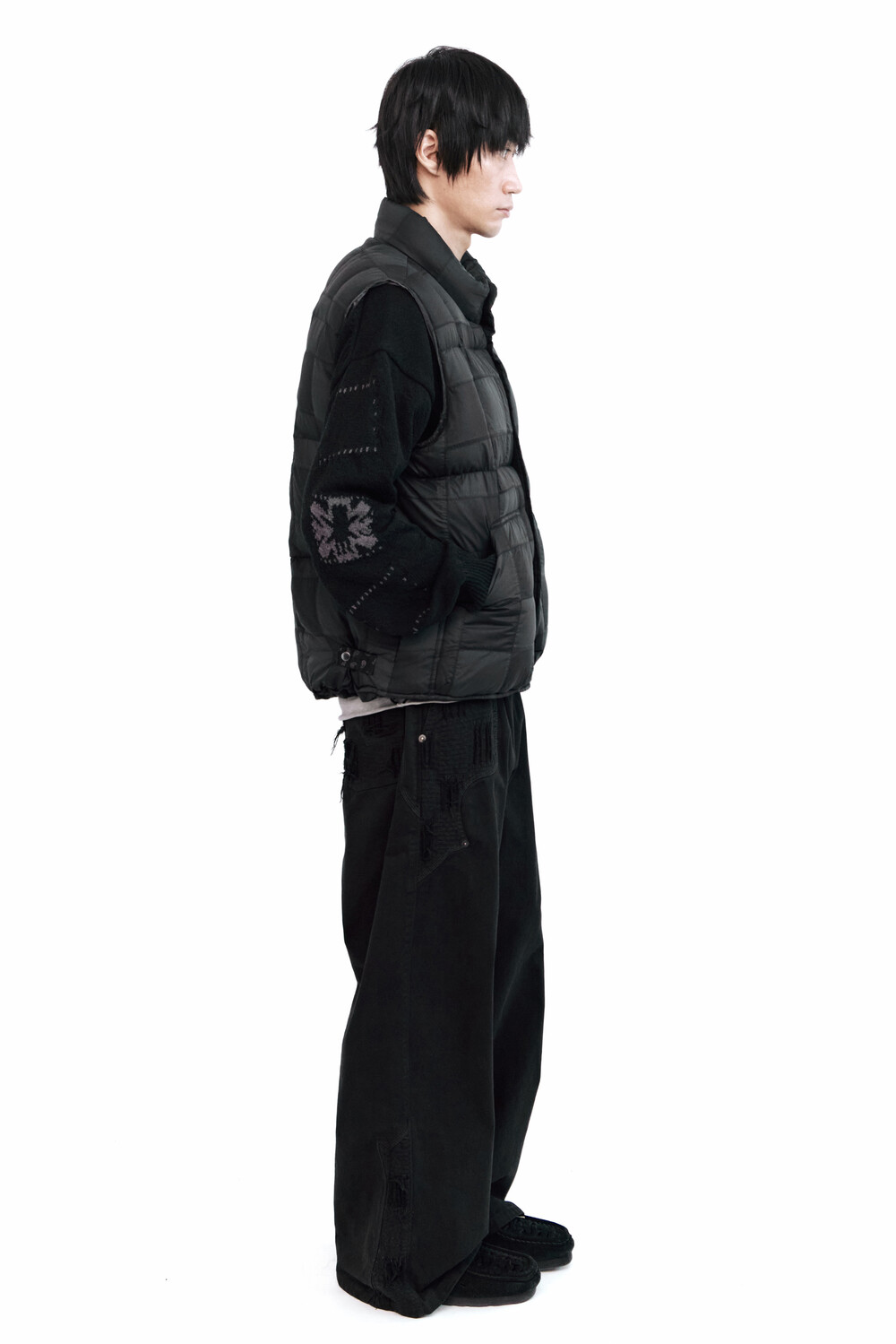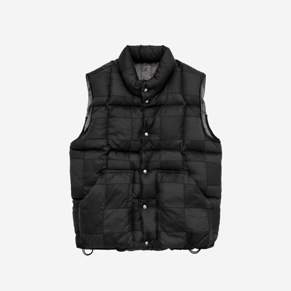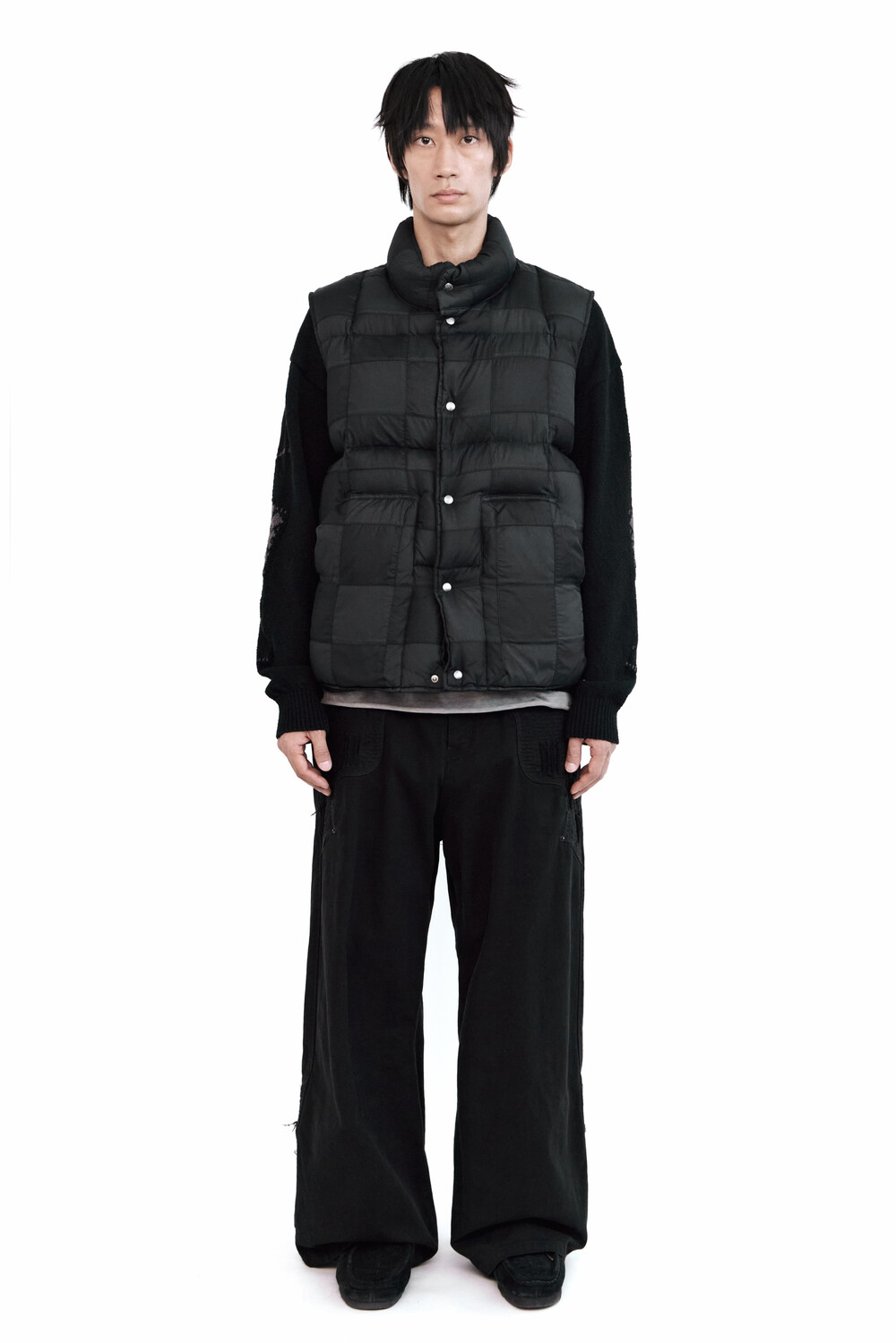 체커보드 형태로 패치워크, 덕다운 충전한 푸퍼 베스트.