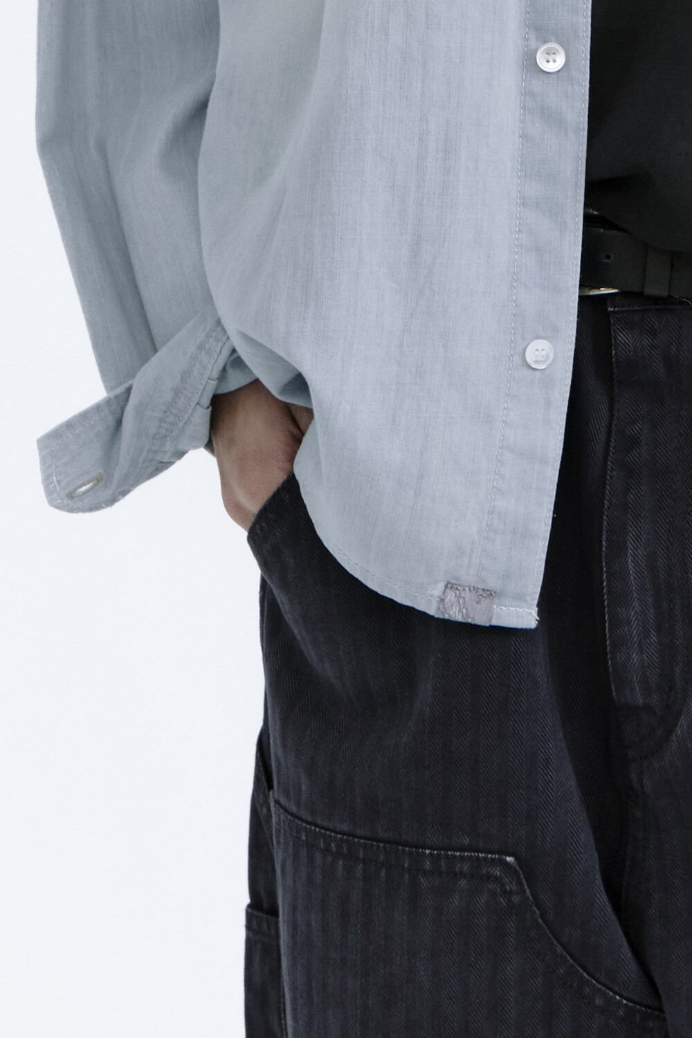 그와 대비되는 섬세하고 부드러운 터치감이 특징적인 데님 셔츠입니다.