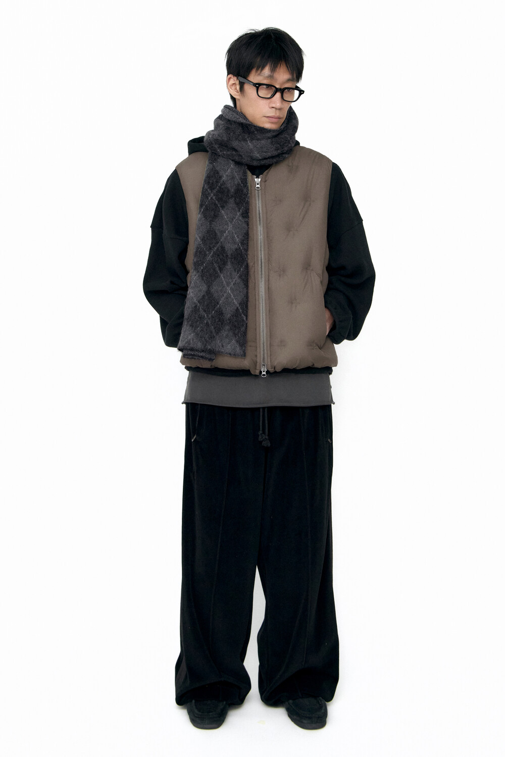 embo down vest - black, beige