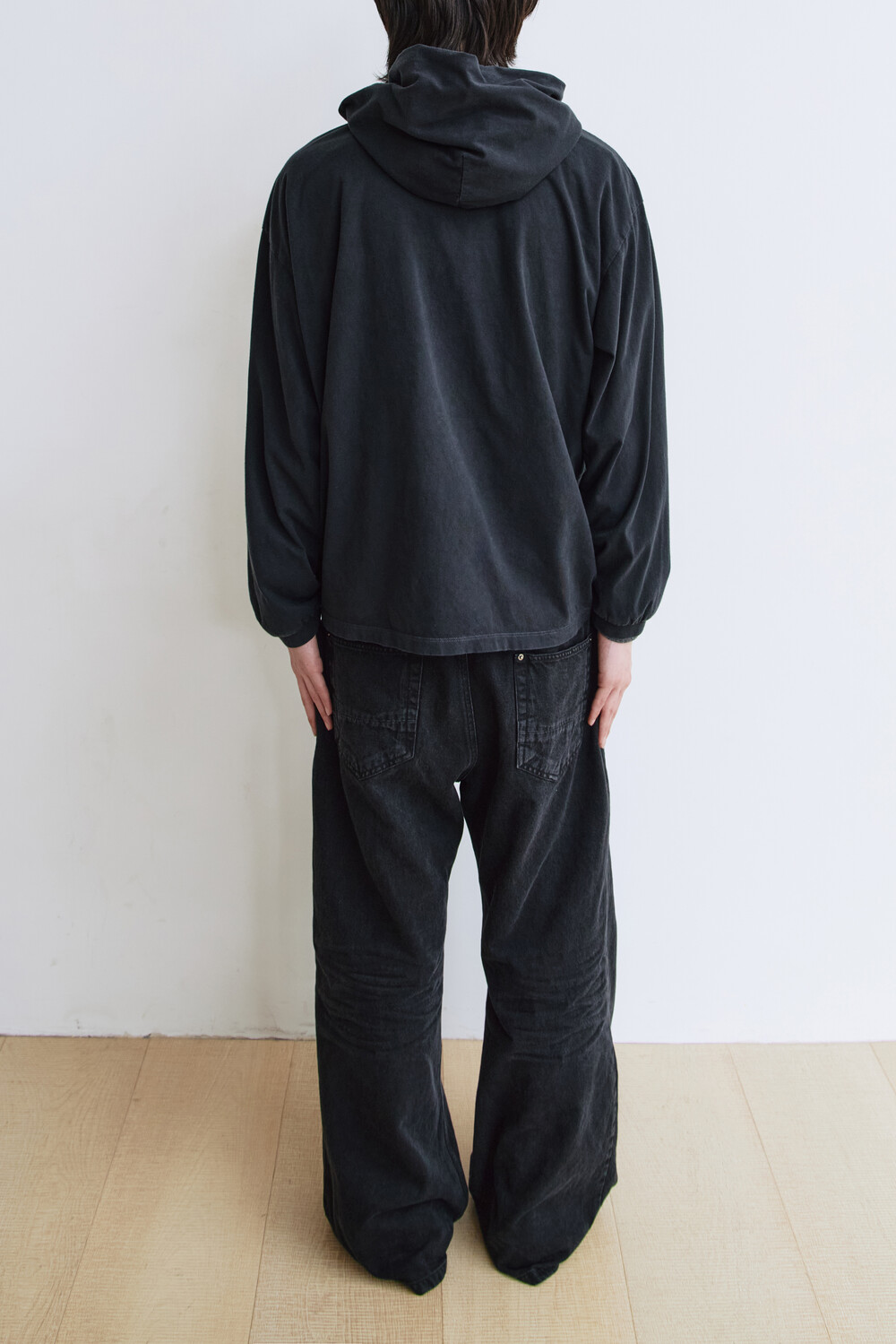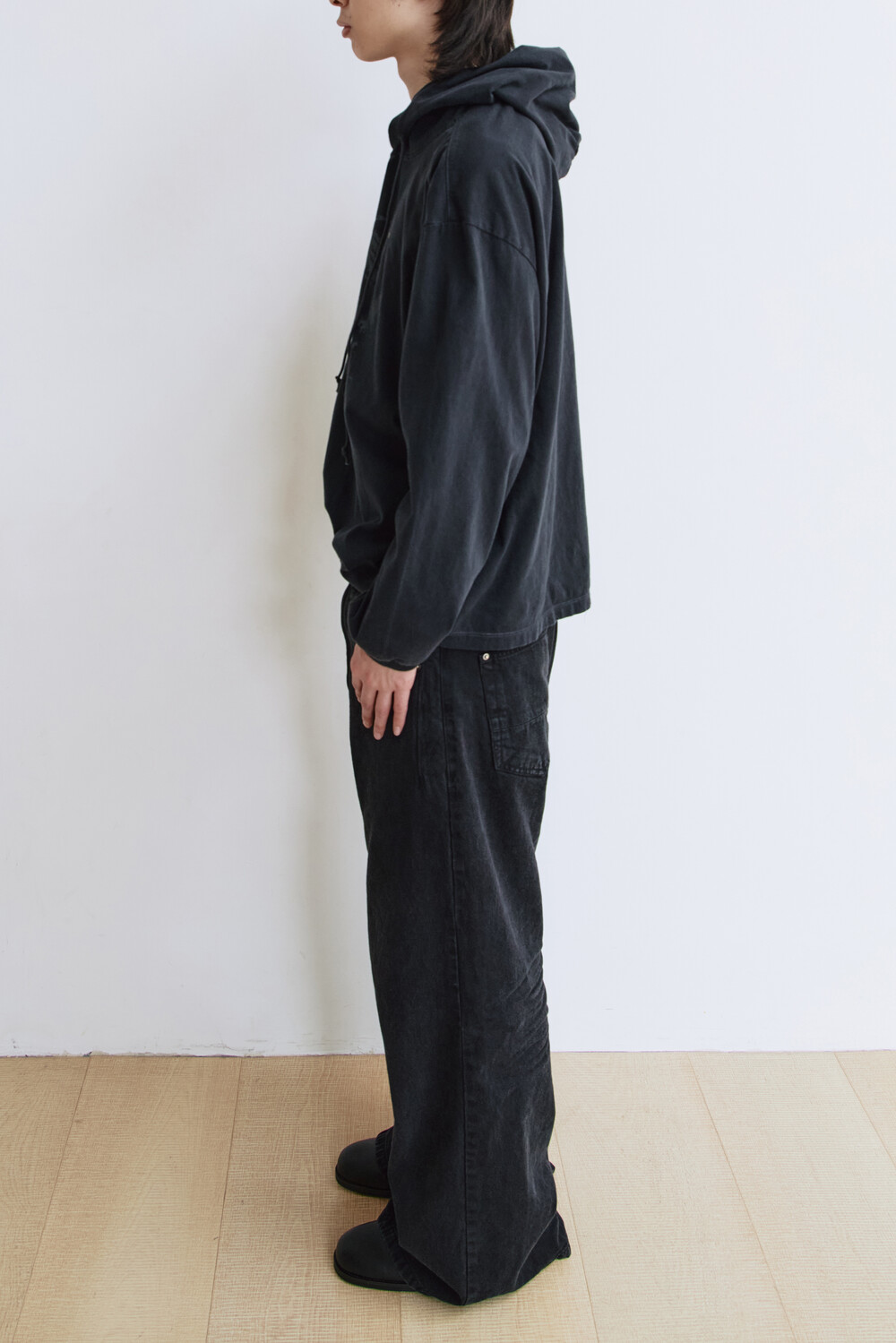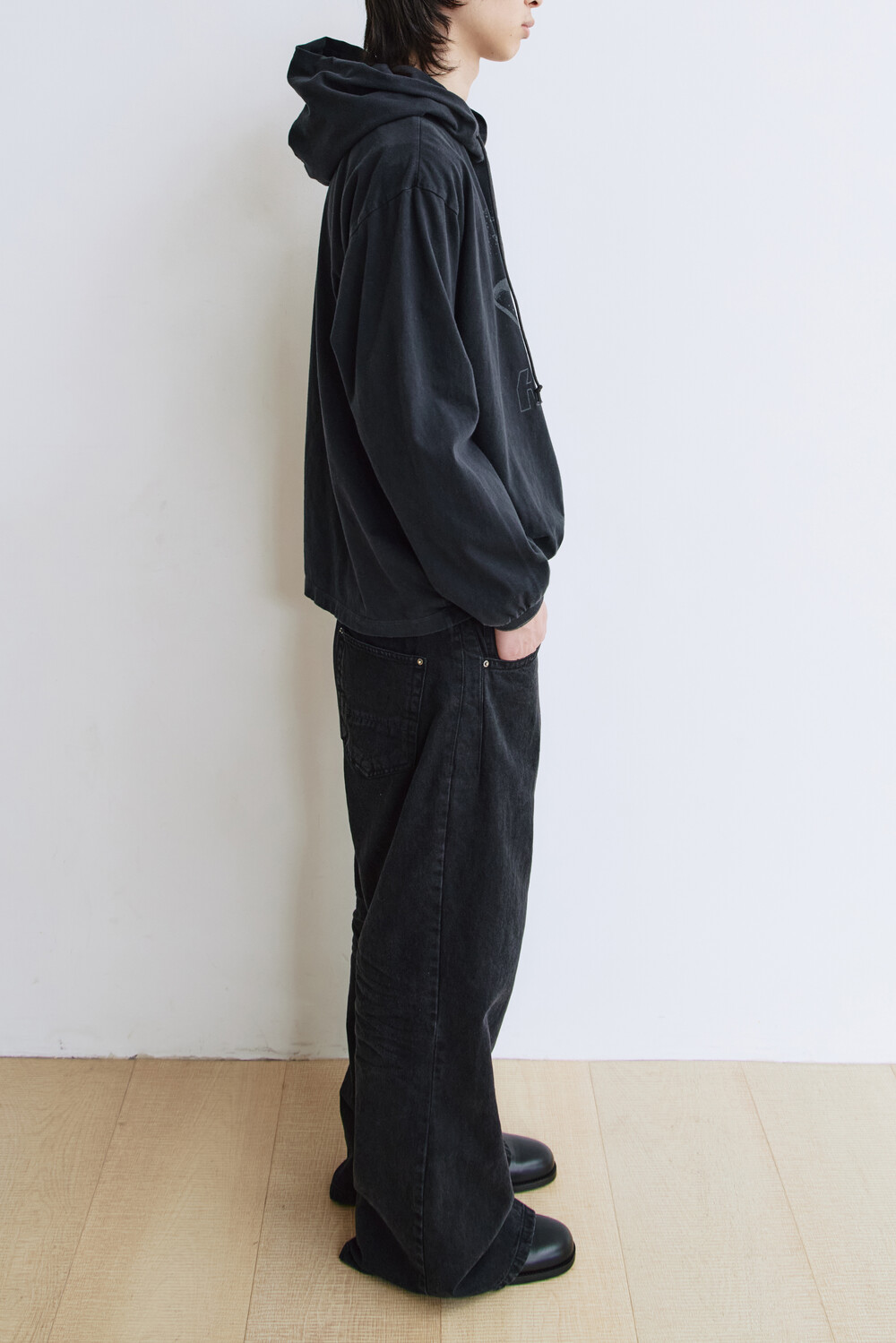 *본 제품은 디자인적 의도로 강한 강도의 후가공 및 스톤 워싱을 적용하여, 불규칙한 위치에 워싱 흔적(염료 뭉침, 올 튐 등) 및 미세 데미지, 미세 이염, 잔여 스톤가루가 존재할 수 있습니다.