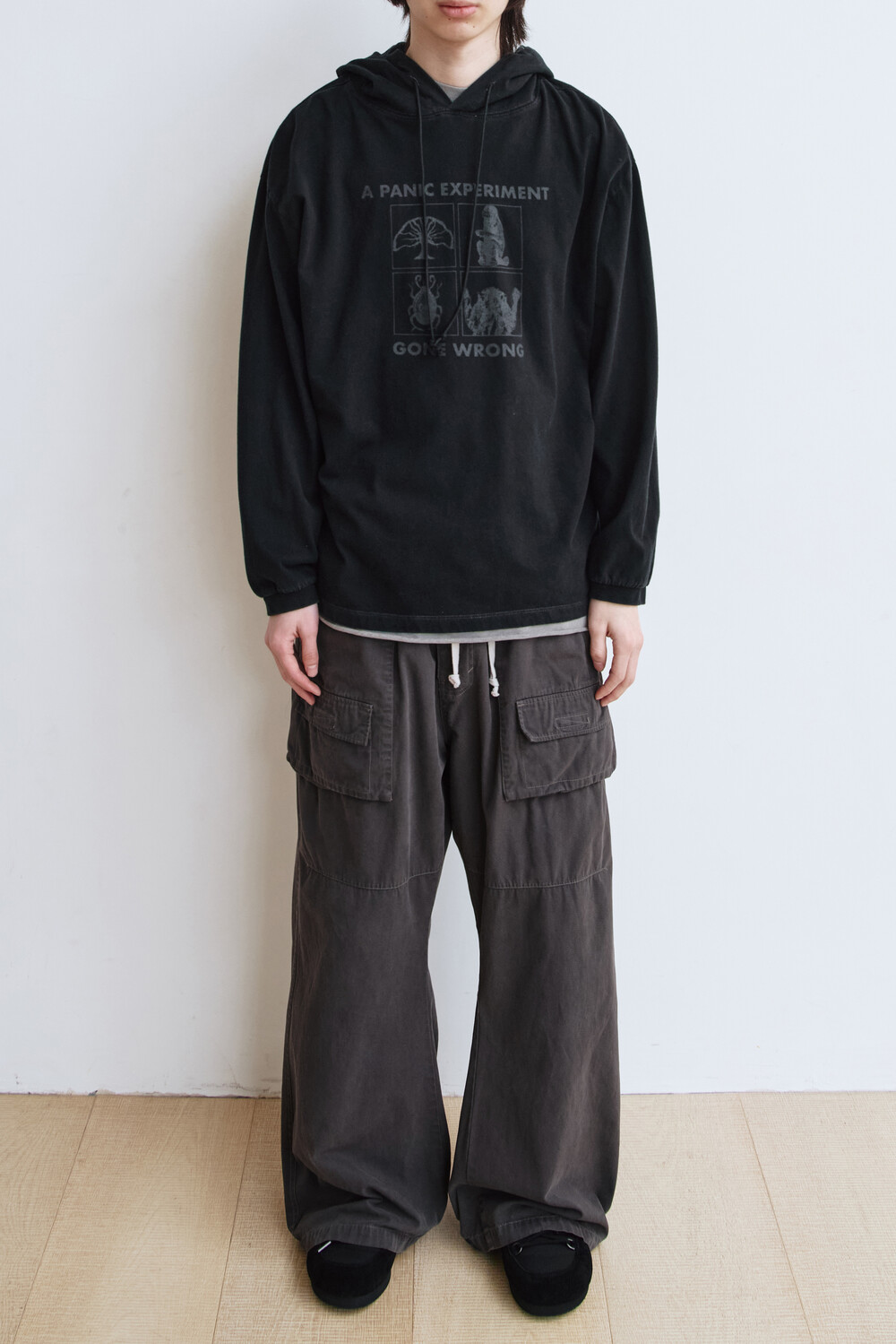 (02.21 PM6:00) graphic hooded long sleeves '4 frame' - black