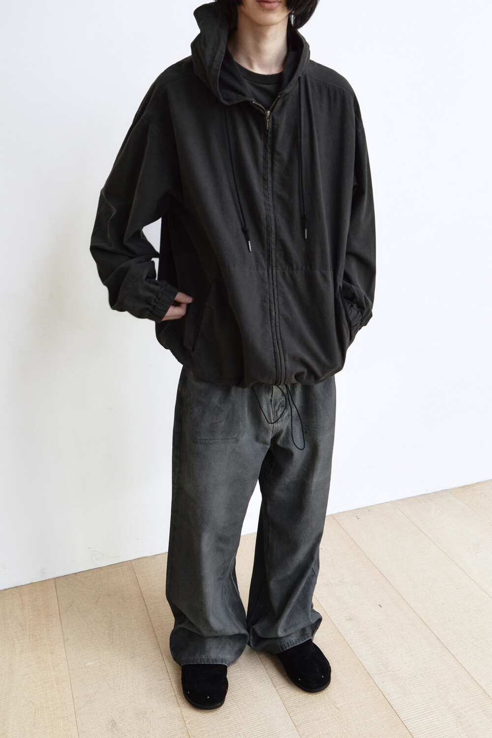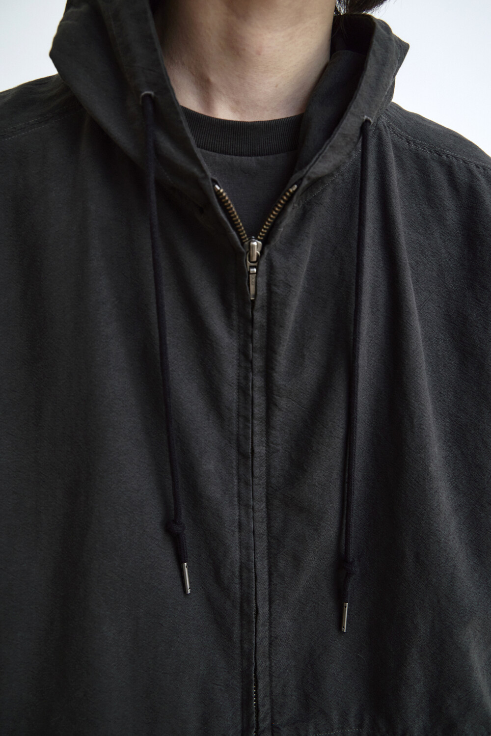 (04.04 PM6:00) zip hoodie parka - used black