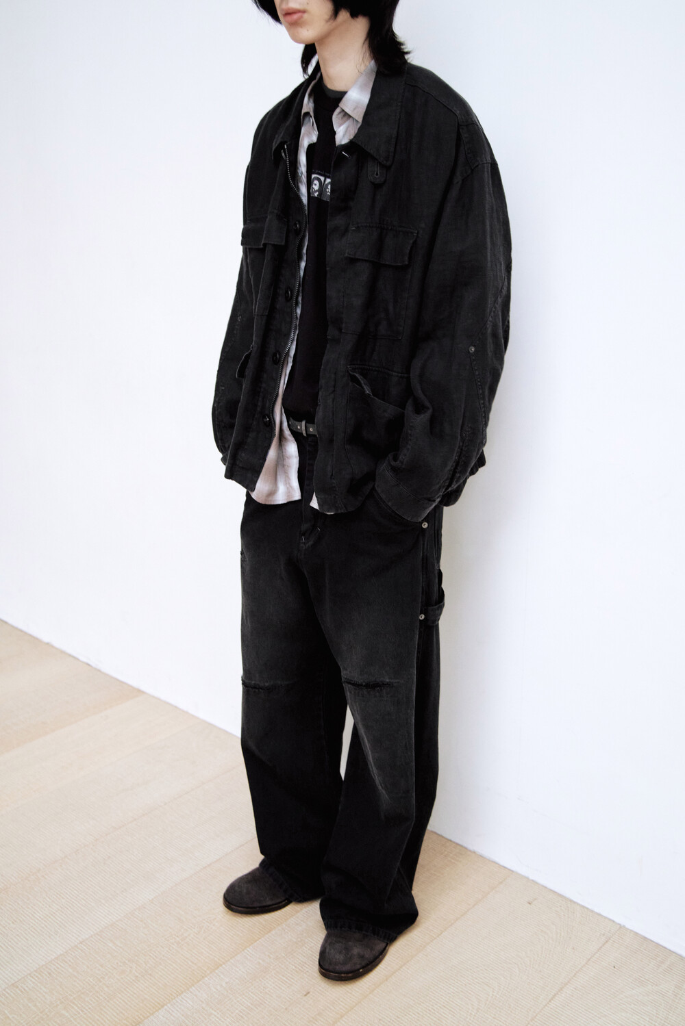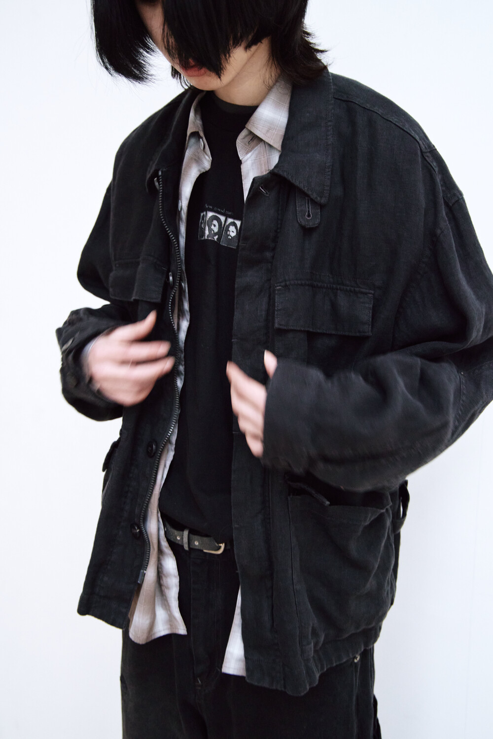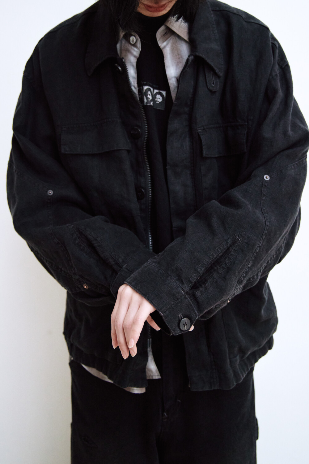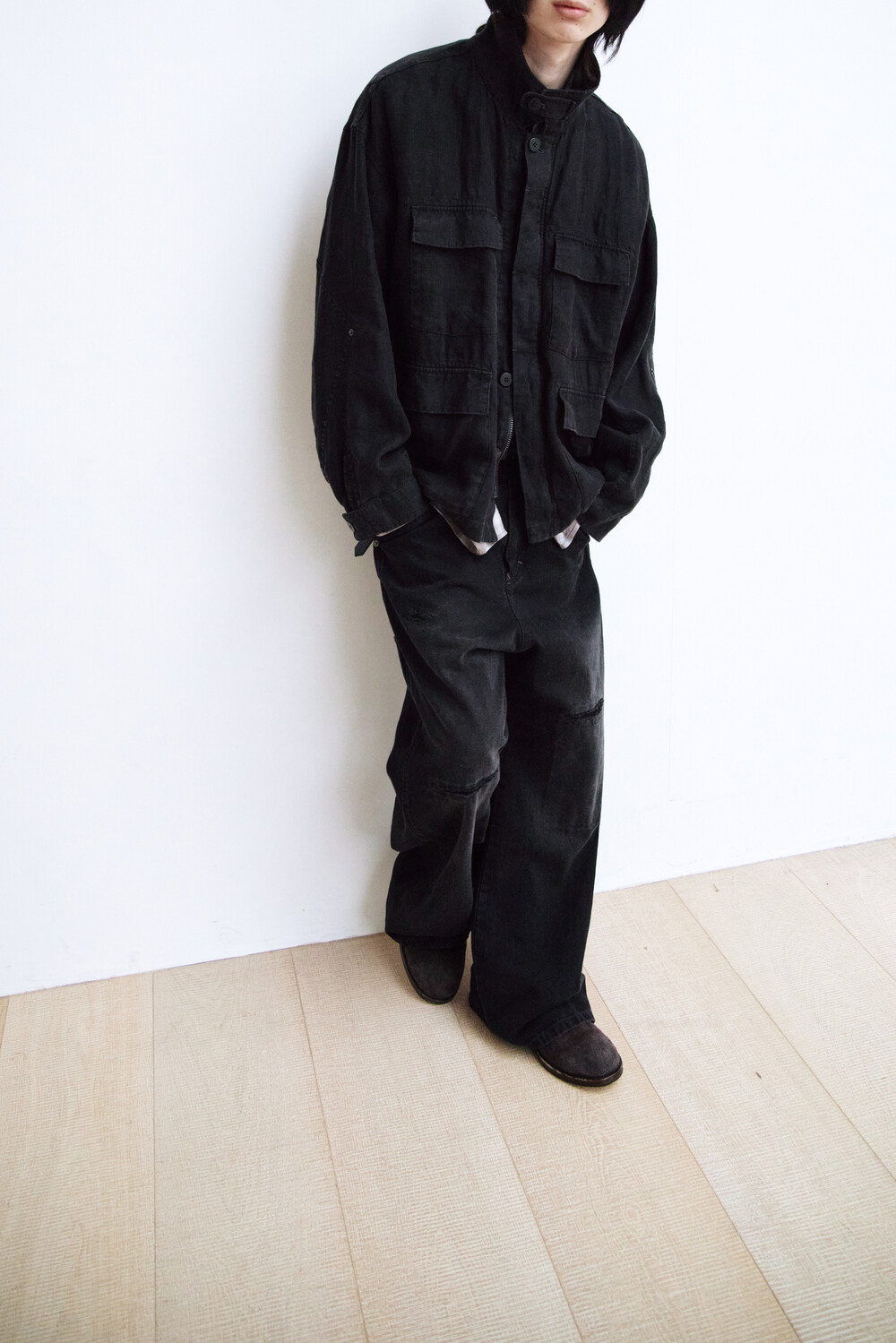 (03.14 PM6:00) linen field jacket - washed black