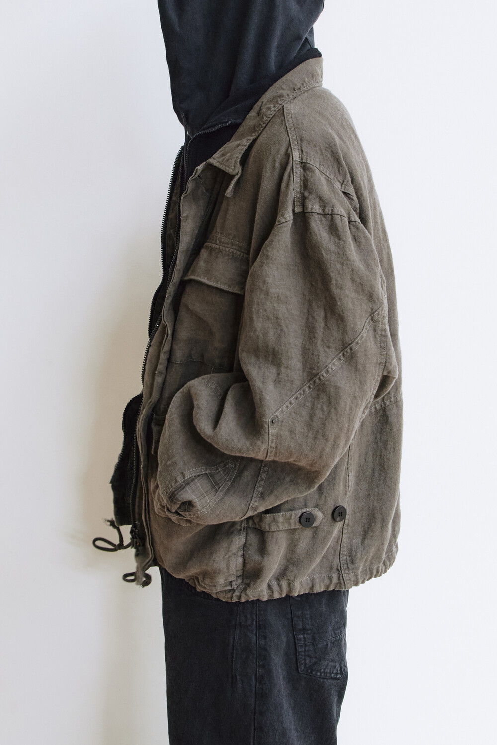 * 린넨 원단 특성상 크고 작은 올 튐이 존재할 수 있으며, 세탁 및 잦은 마찰 등에 노출될 경우 포켓 부근 또는 원단 표면에 데미지가 발생할 수 있습니다.