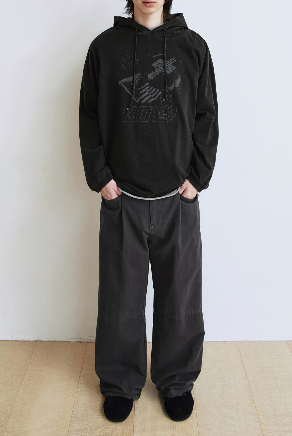 (03.25 PM6:00) 1 tuck gosima pants - deep charcoal