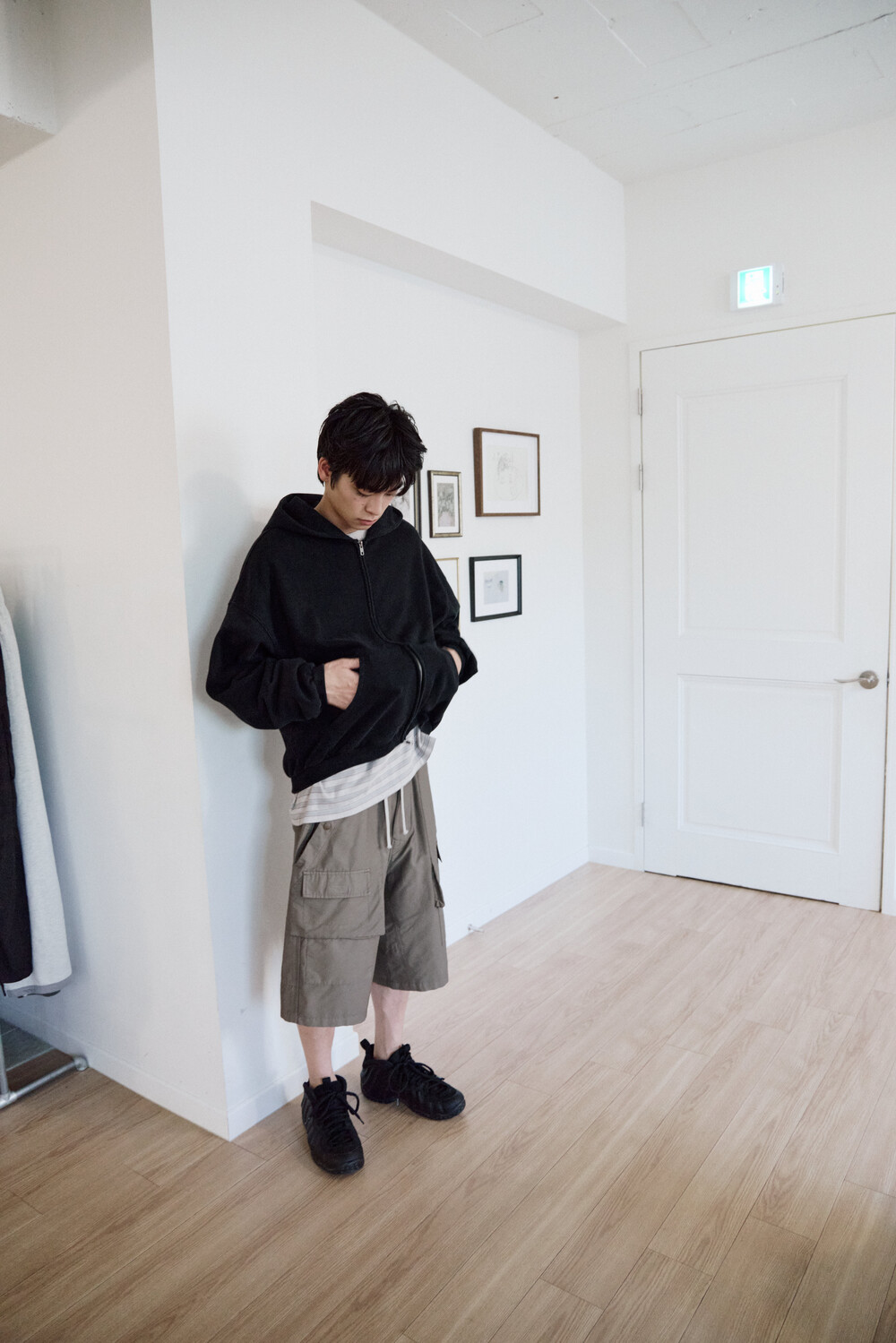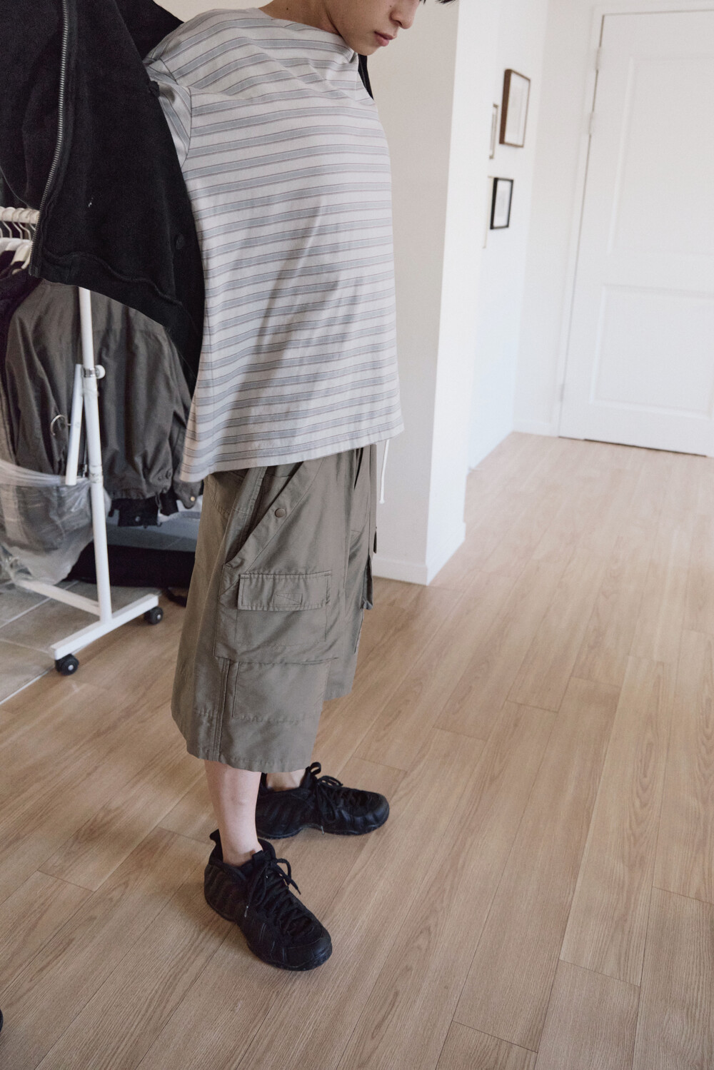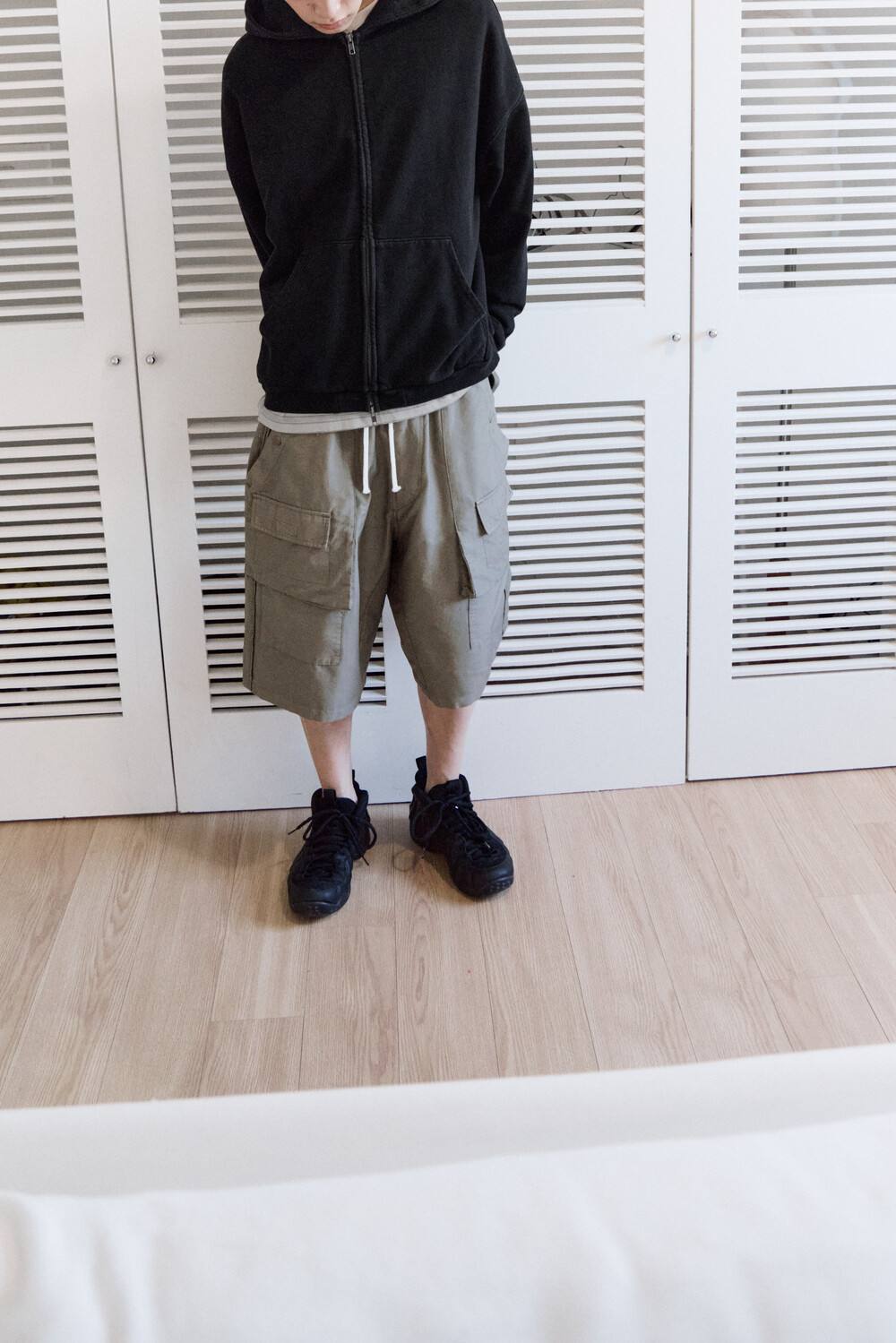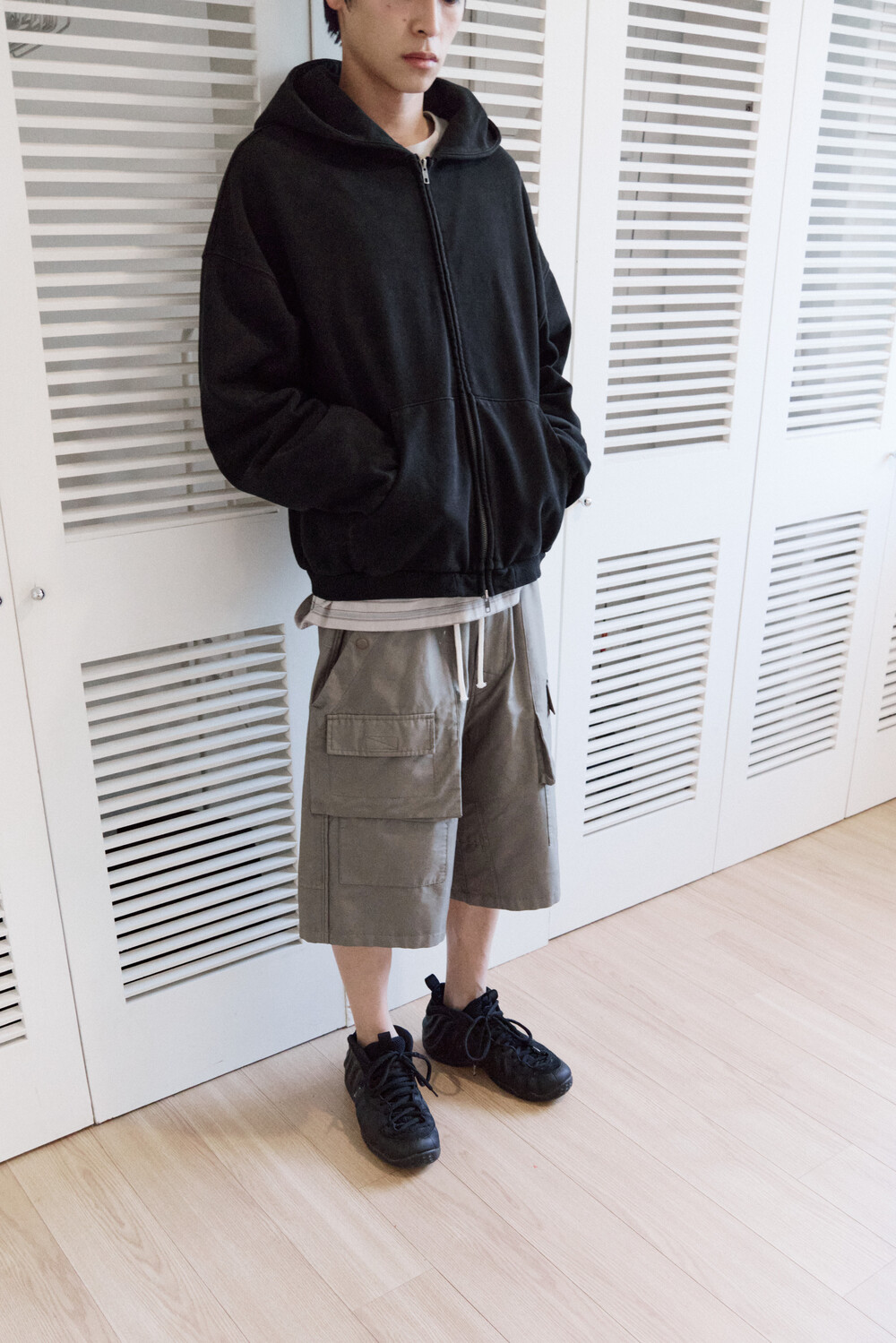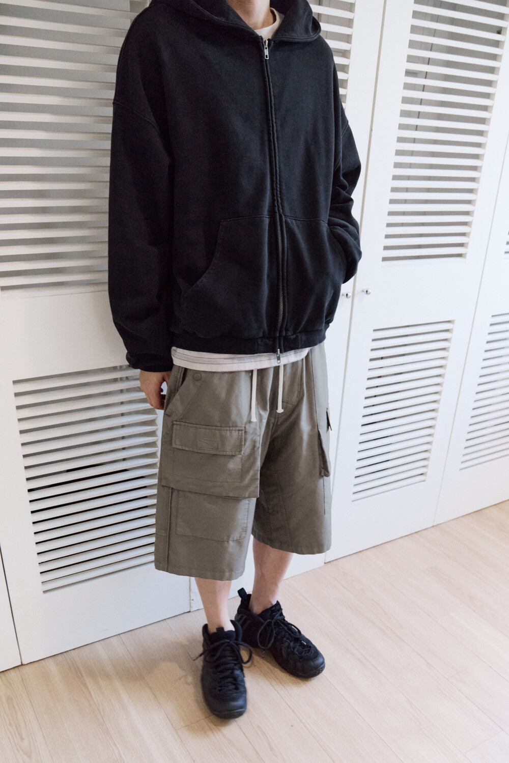 (04.25 PM6:00) front cargo 1/2 pants - gray beige