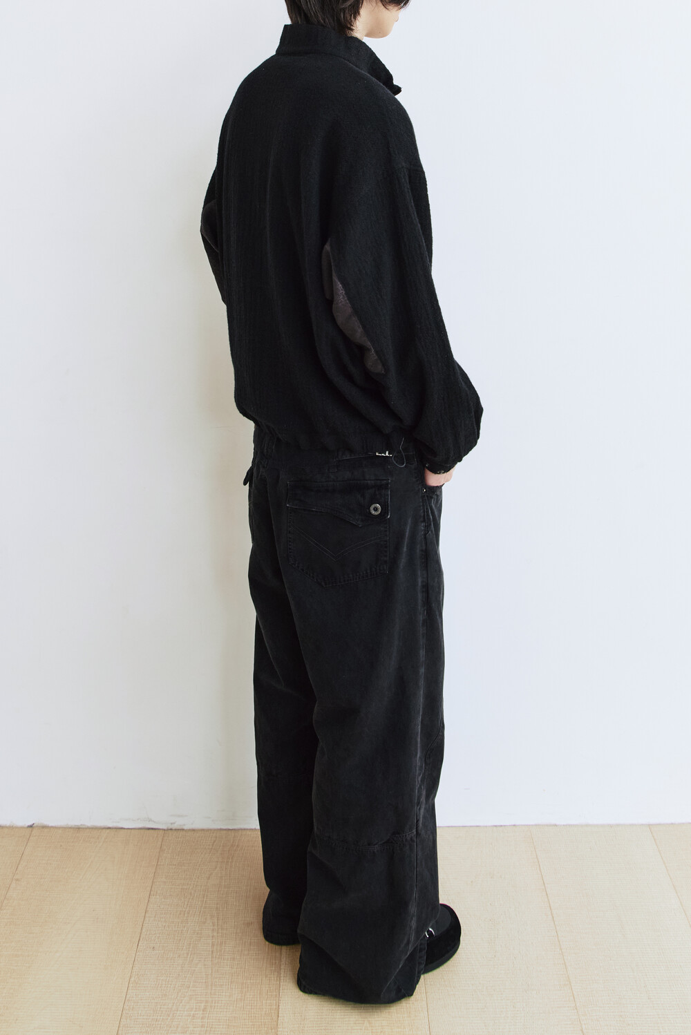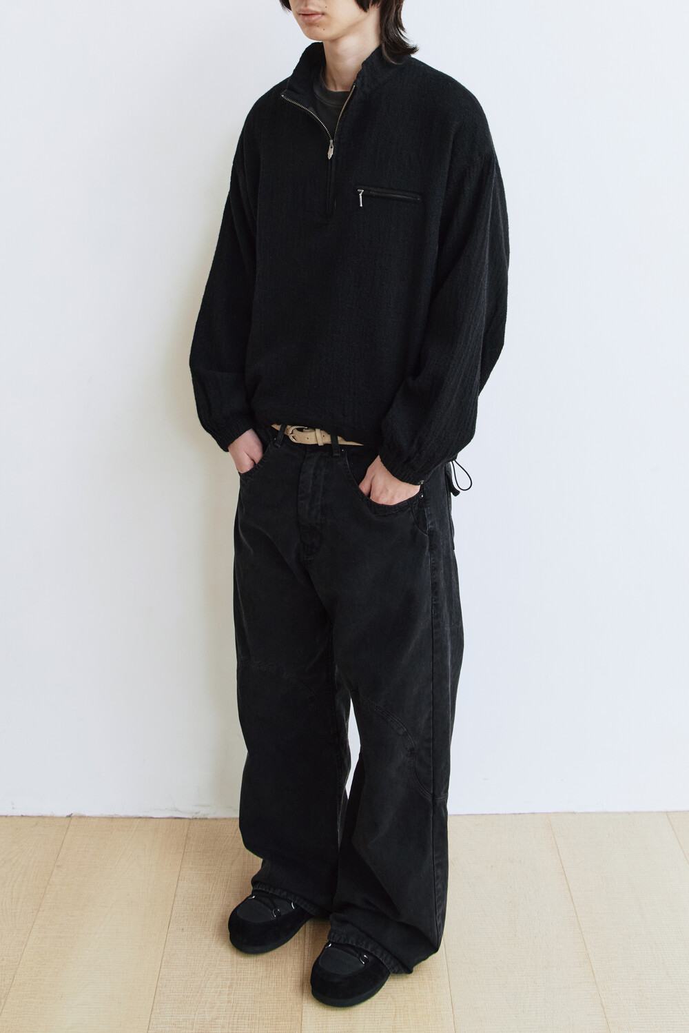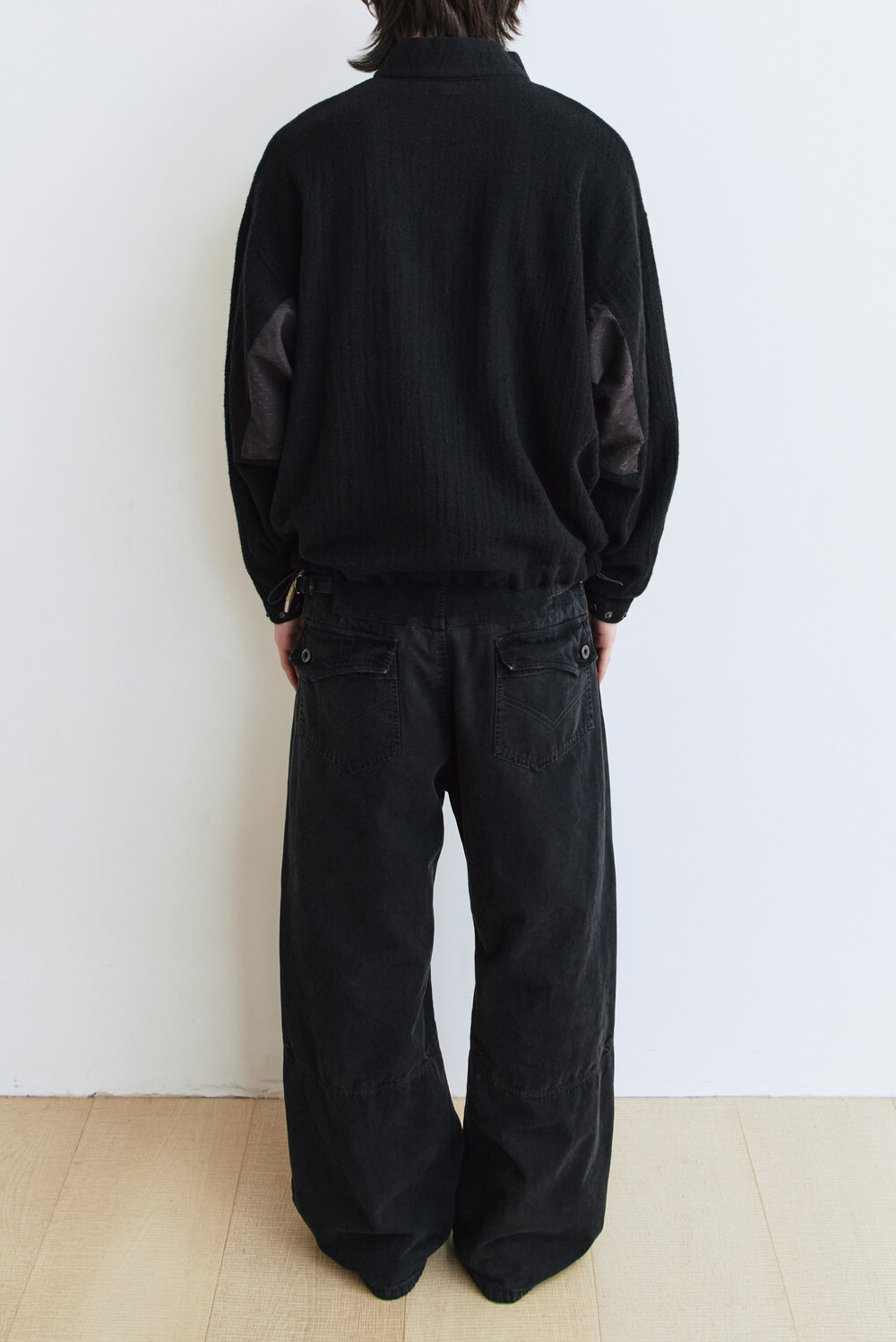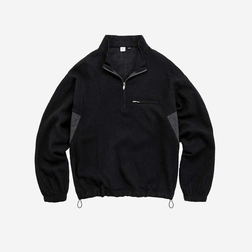 (03.07 PM6:00) boiled wool half zip (paisley patched) - black