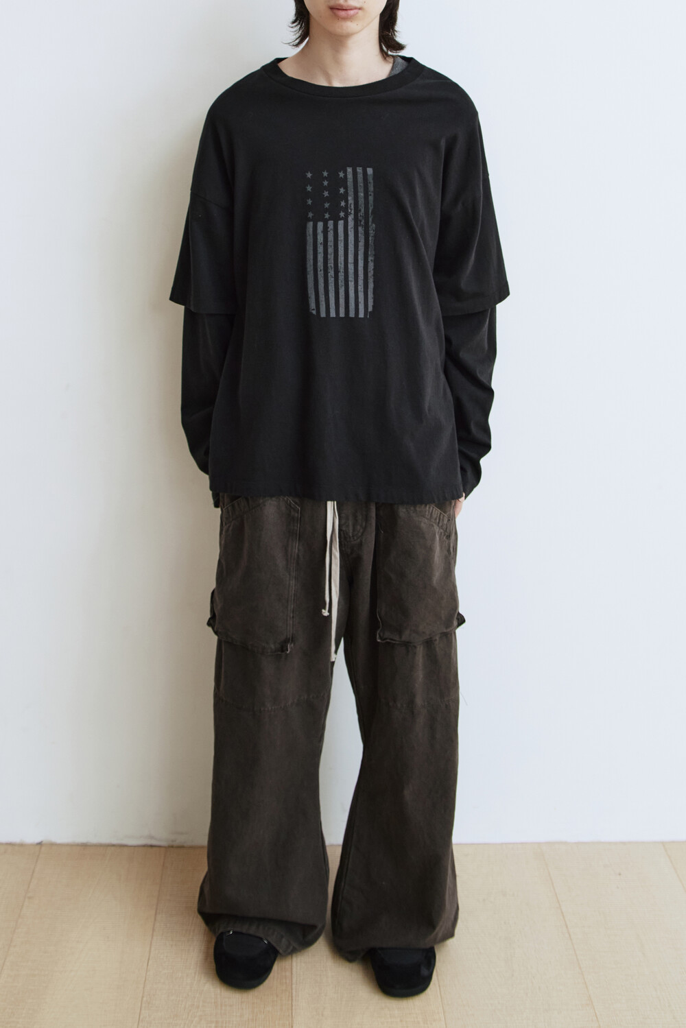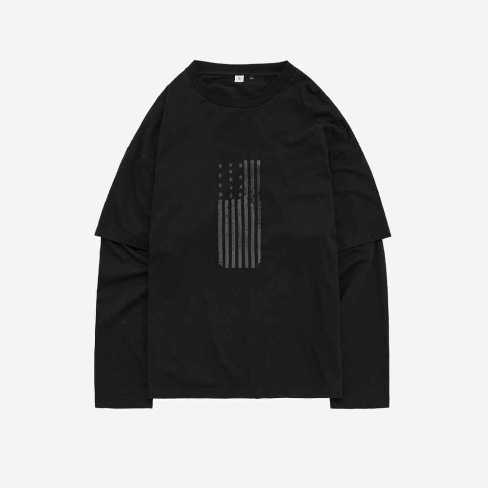 (03.07 PM6:00) graphic double layer tee (american flag) - black