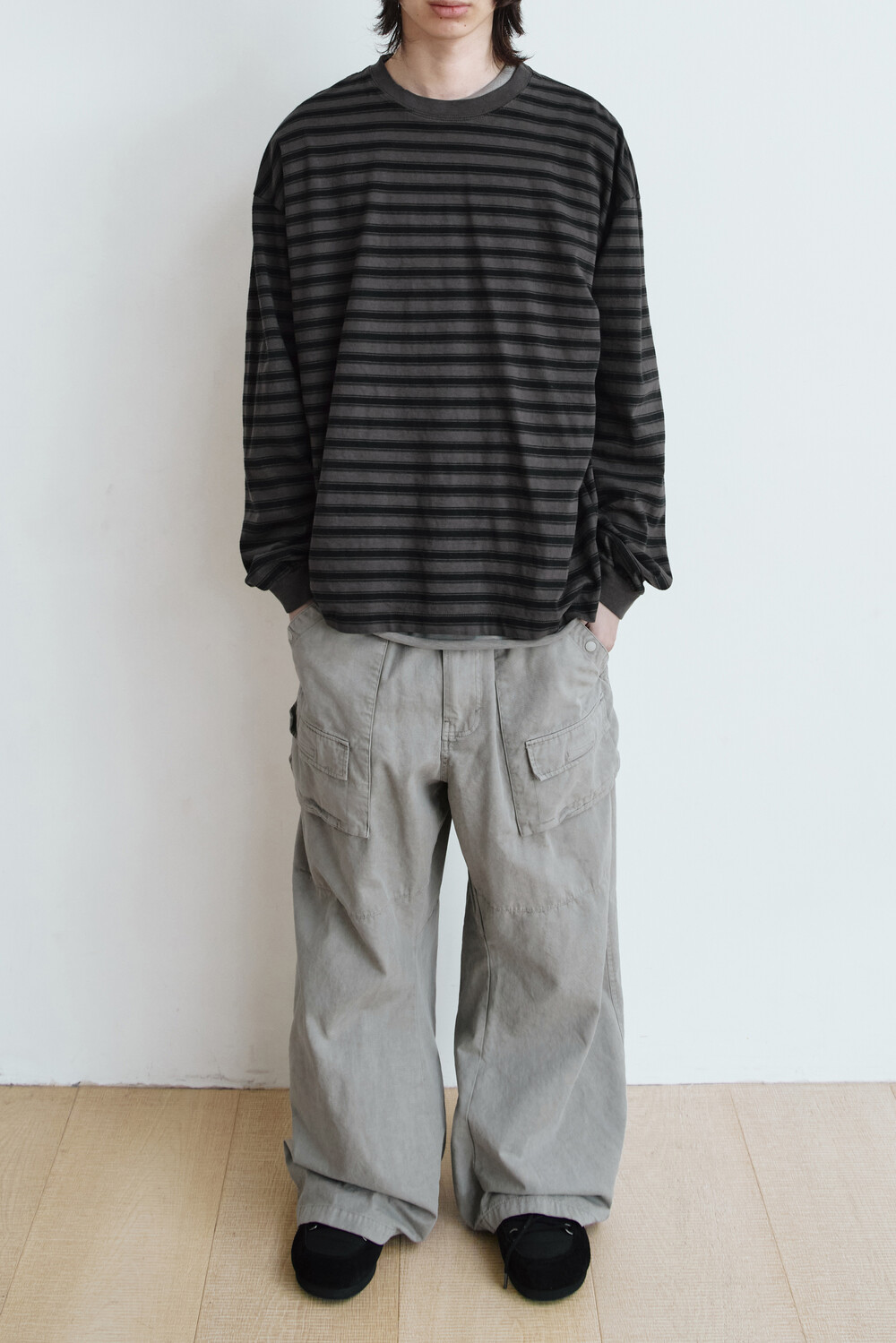 (02.28 PM6:00) striped long sleeve - charcoal