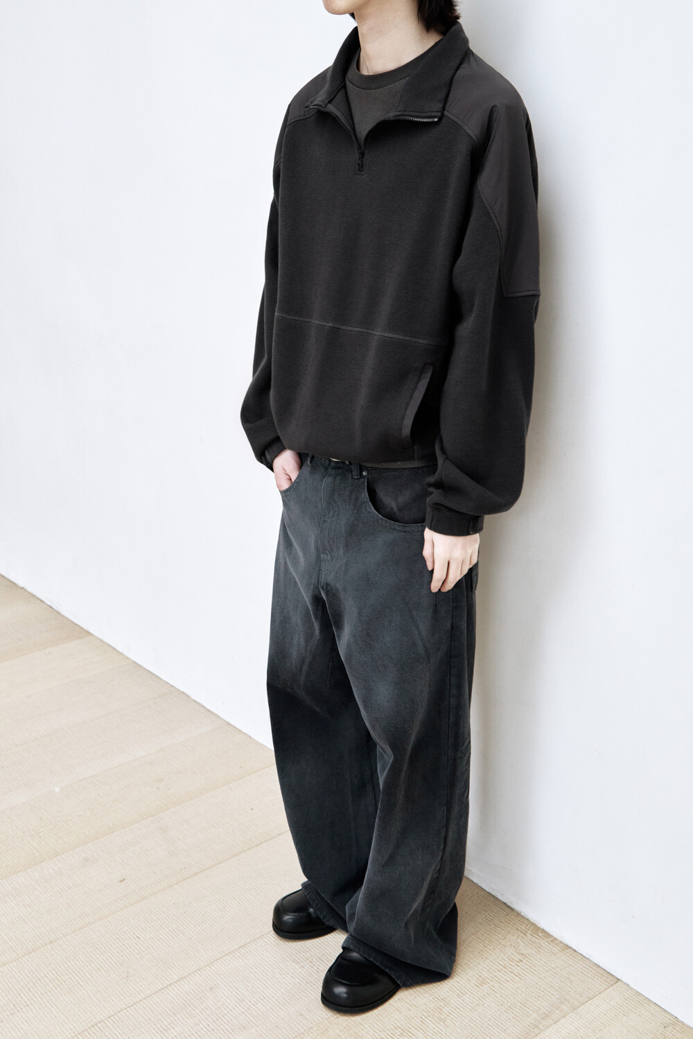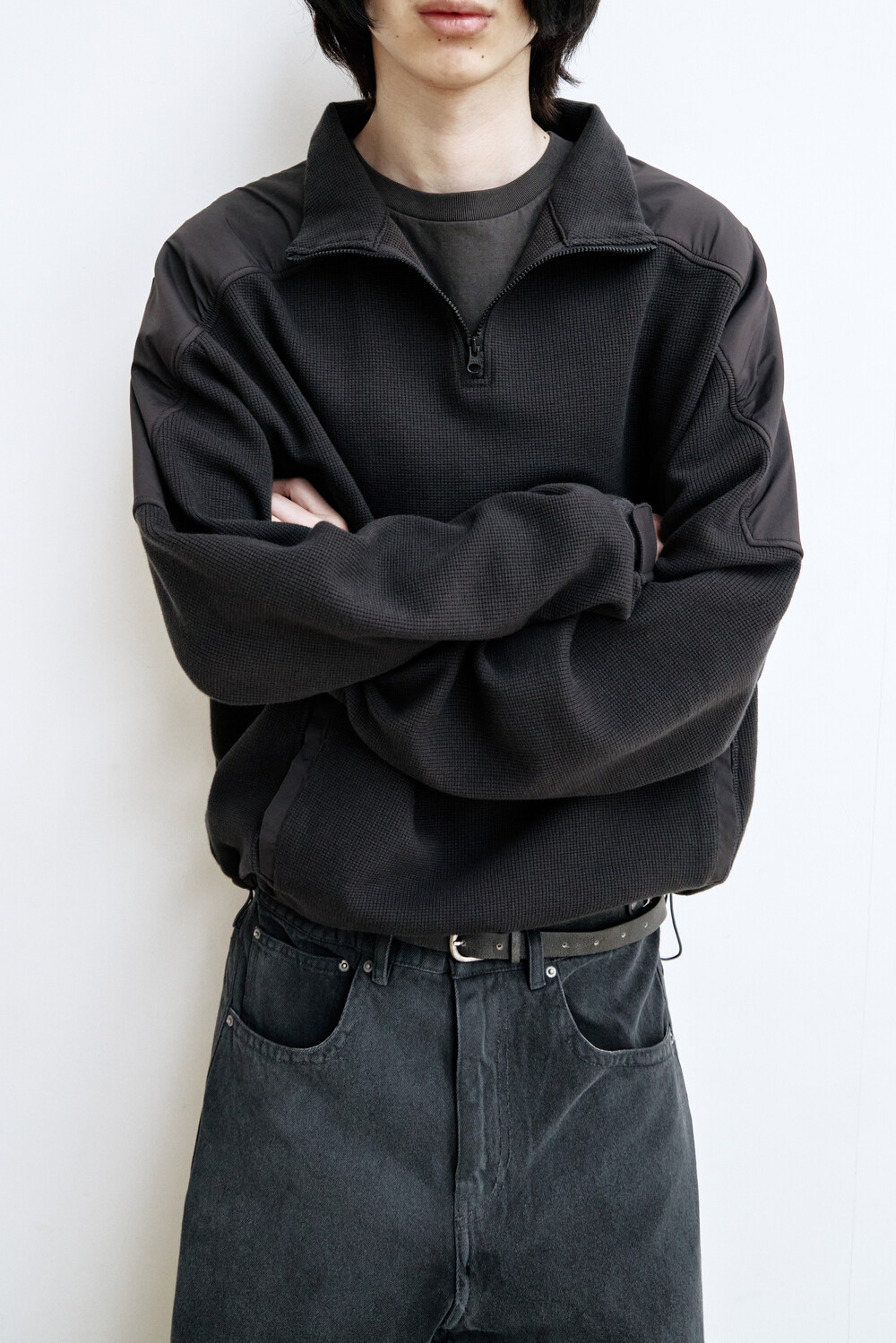 (03.28 PM6:00) commando half zip sweat - black + charcoal