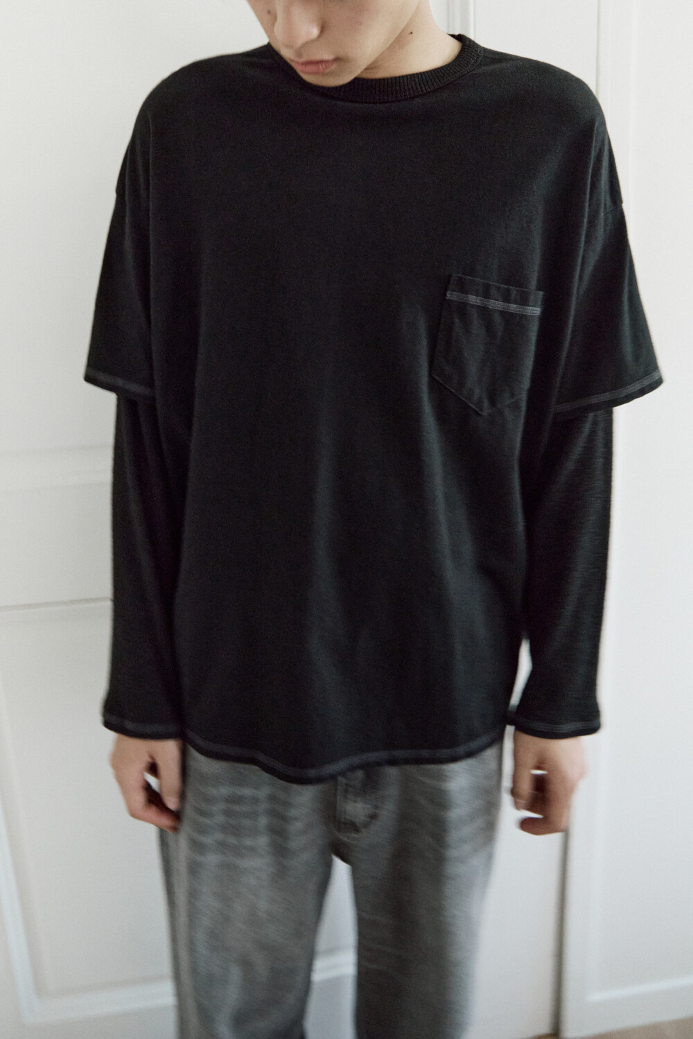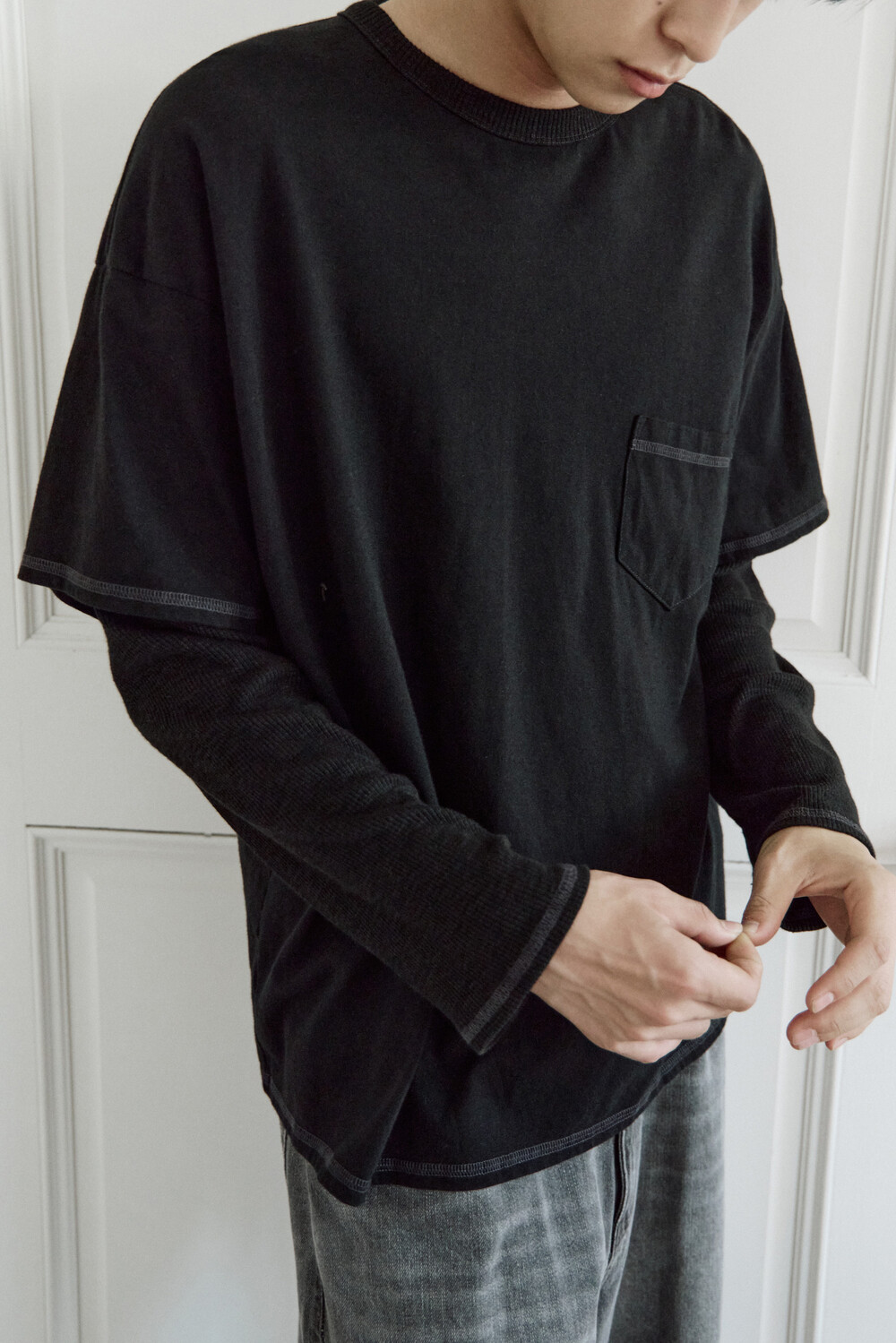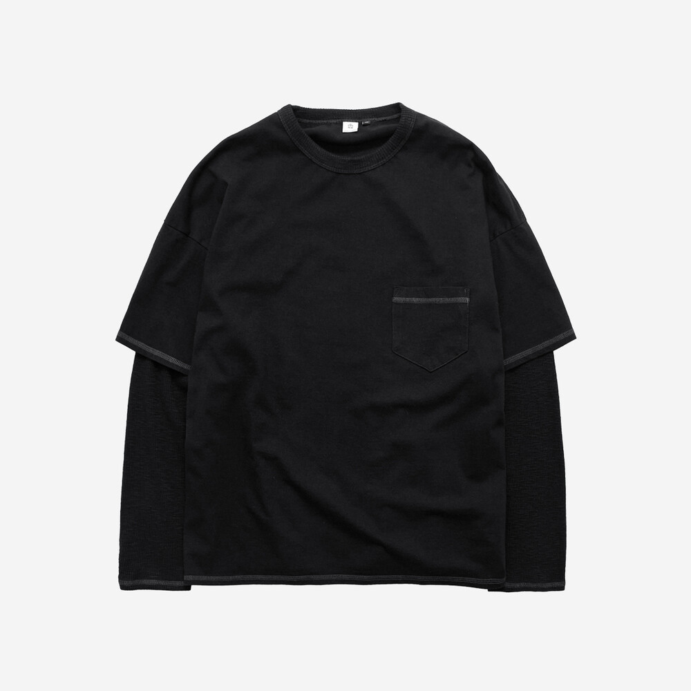 (04.22 PM6:00) layered long sleeves (cover stitched) - black