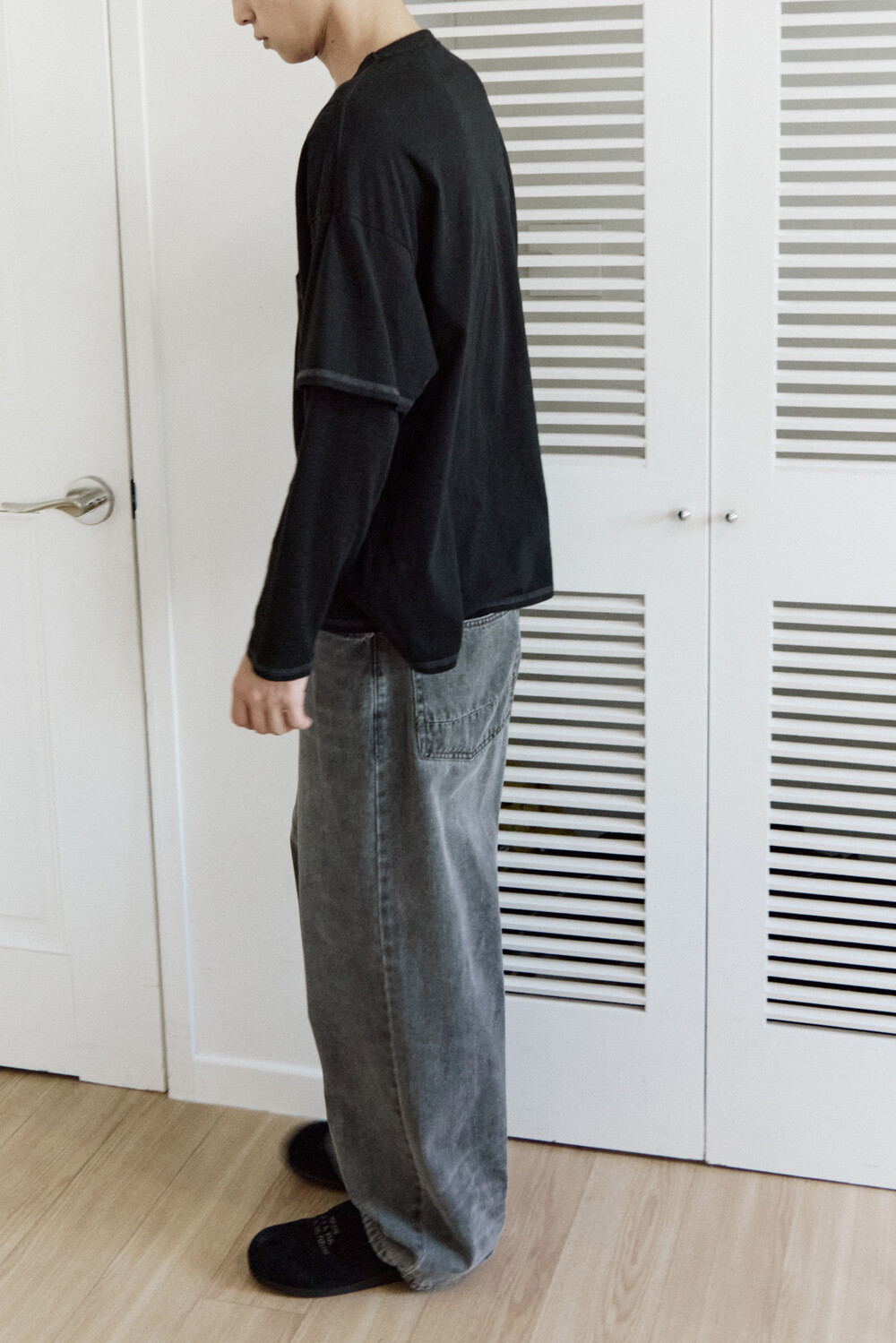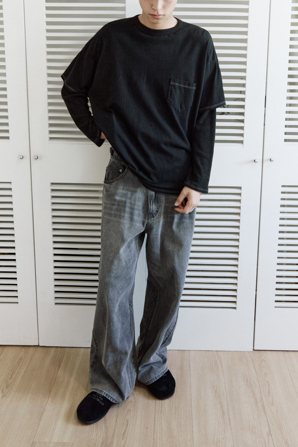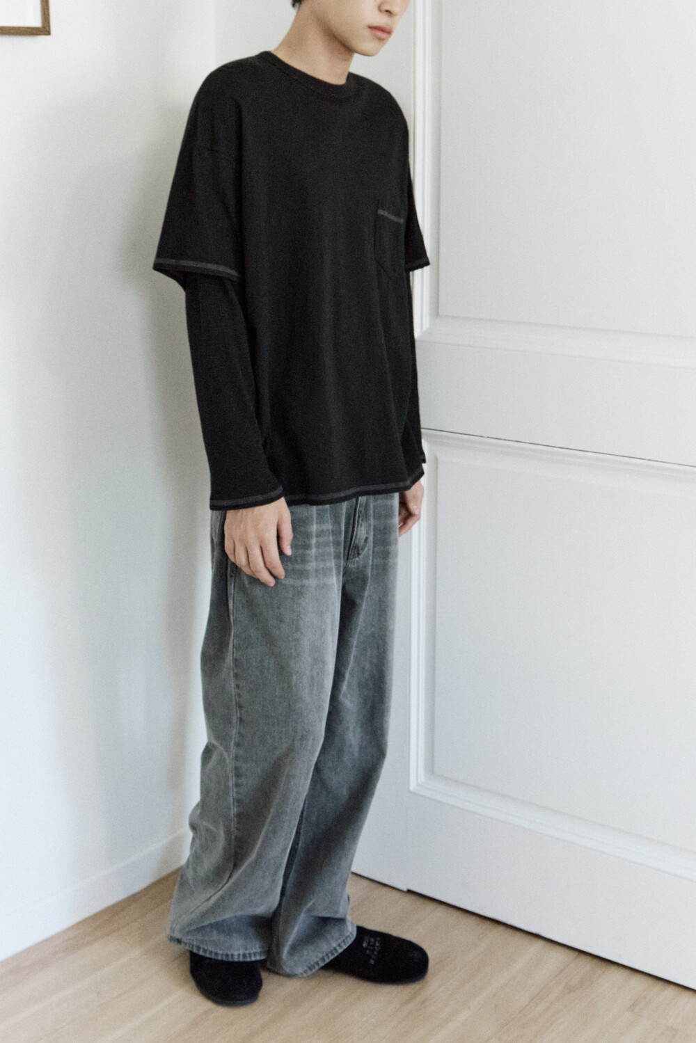 (04.22 PM6:00) layered long sleeves (cover stitched) - black