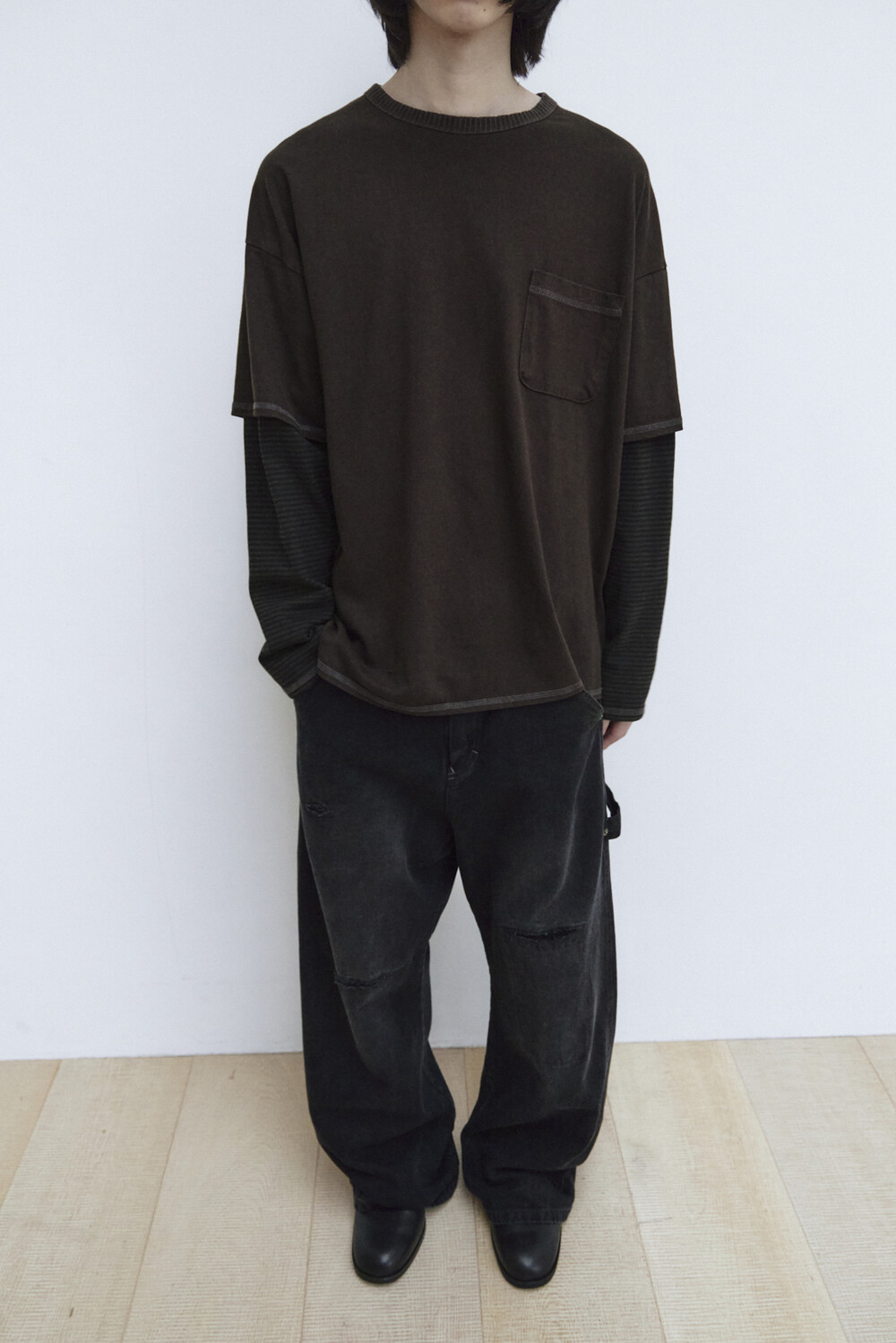 (04.11 PM6:00) double layer tee - brown