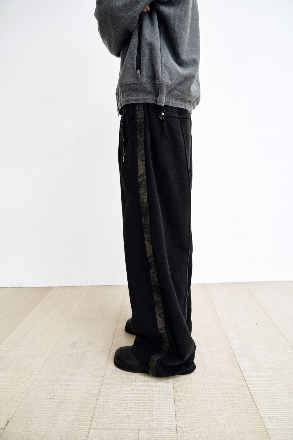 (04.04 PM6:00) loosed track pants (side camou) - black