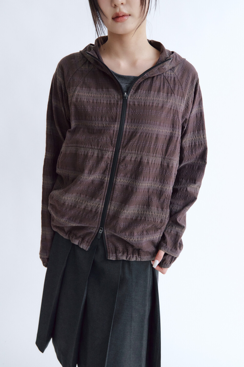 (04.18 PM5:00) women striped hoodie parka - mixed brown