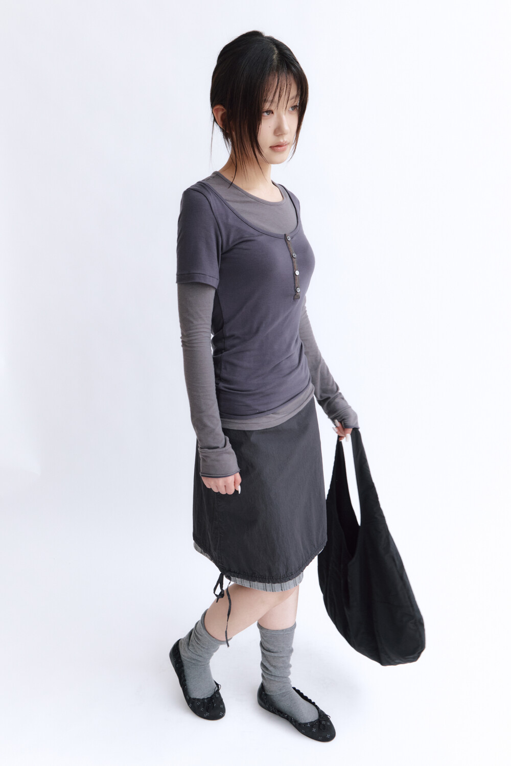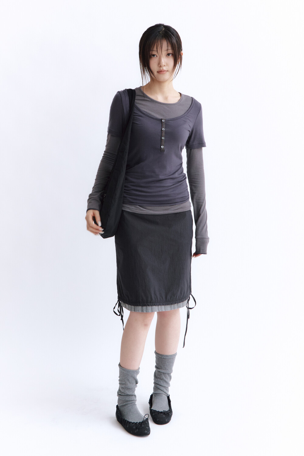 (04.18 PM5:00) women layered skirt - charcoal